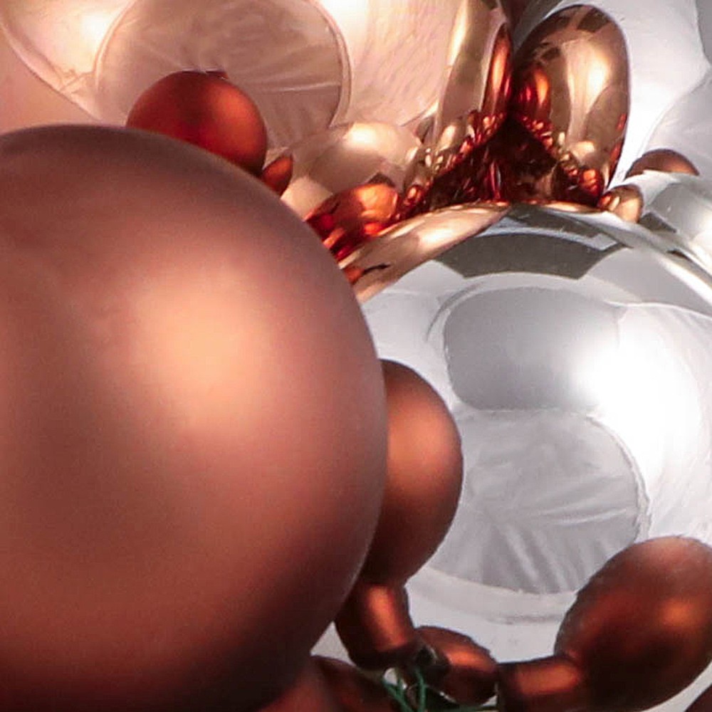With a diameter of around 40mm and a quantity of around 32 pieces per pack, our glass mirror berries for Christmas offer numerous design options. You can incorporate the shiny and matte glass balls for Christmas into your DIY projects or use them as enchanting tree decorations. The mirror berries in apricot and silver offer the right design for every taste.