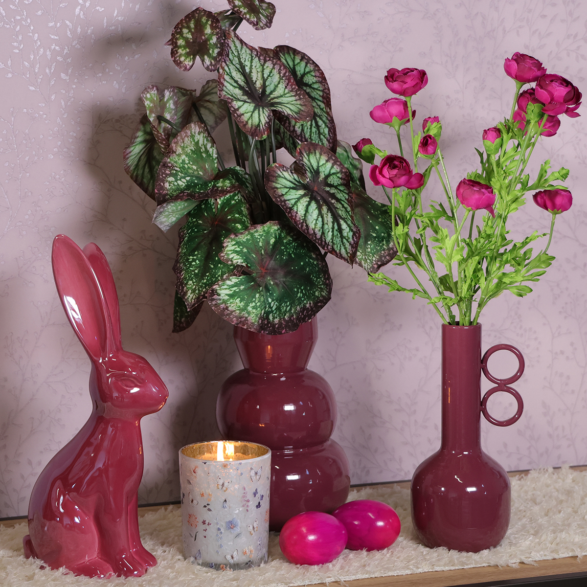 This vase impresses with its sophisticated interplay of form and function. Its slender, long neck lends it a certain grace and makes it ideal for stylishly displaying long-stemmed flowers. The round handles – a real eye-catcher – are not only decorative but also underscore the contemporary character of this piece. Crafted from solid metal, the vase scores points not only visually but also for its durable quality. The glossy red finish gives it a luxurious feel and makes it a striking focal point in any room.