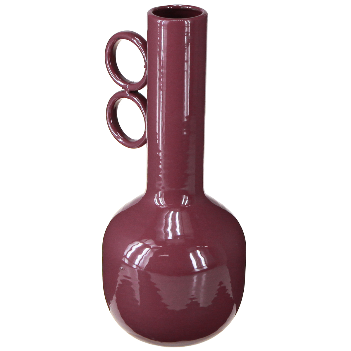 Modern design vase with long neck and round handles