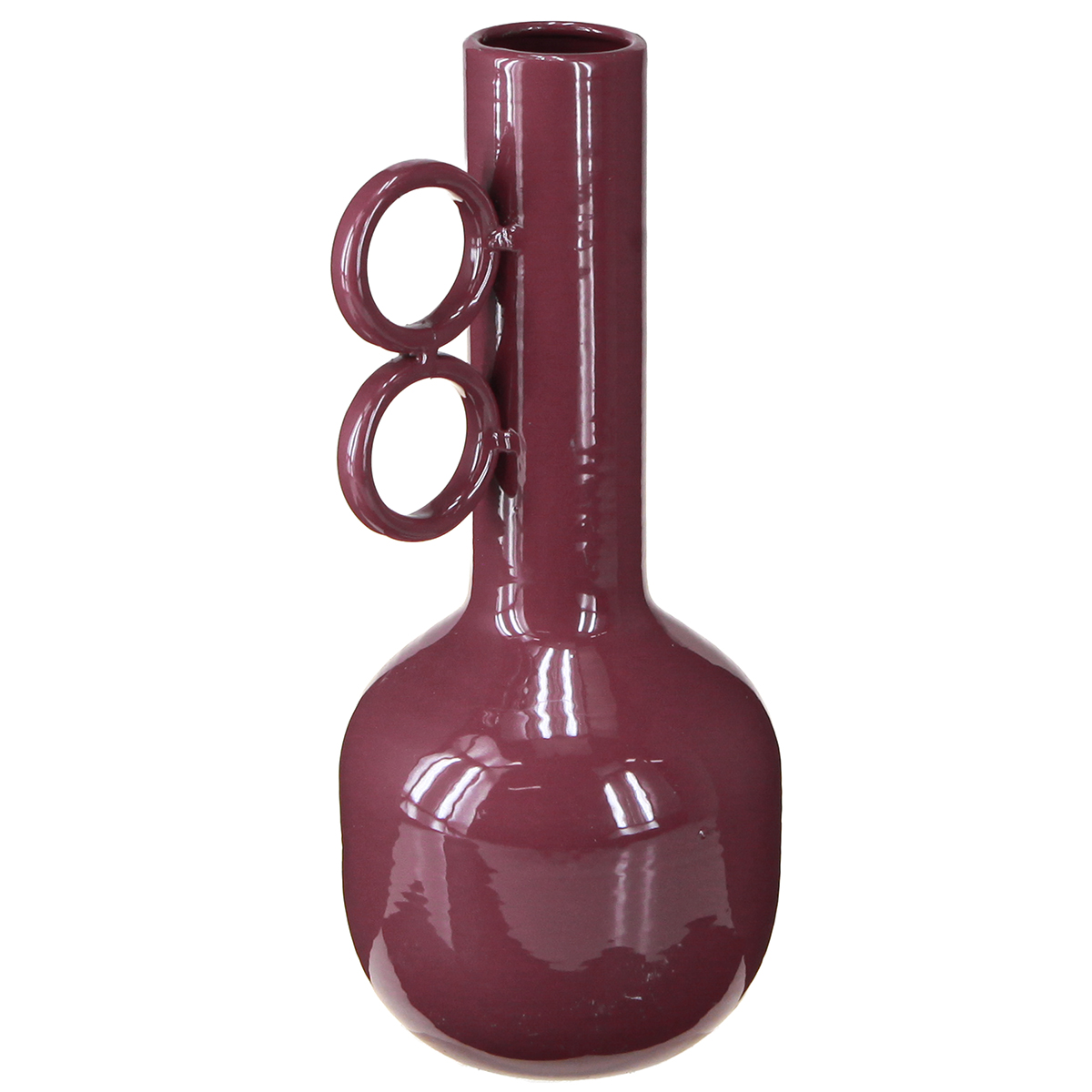 Looking for a unique vase to elevate your décor? This modern vase, with its elegant long neck and striking round handles, is just what you need! Its vibrant red color and artistic design will draw attention in any room. Whether displayed on its own or combined with a floral arrangement, this vase is a highlight that brings style and personality to your home. It adds a touch of elegance and creates stylish accents. Perfect for the living room, entryway, or as a sophisticated element in the office – this vase is simply stunning!