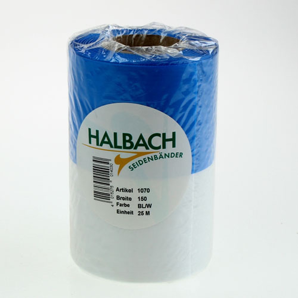 Moiré blue and white wreath ribbons, 150 mm