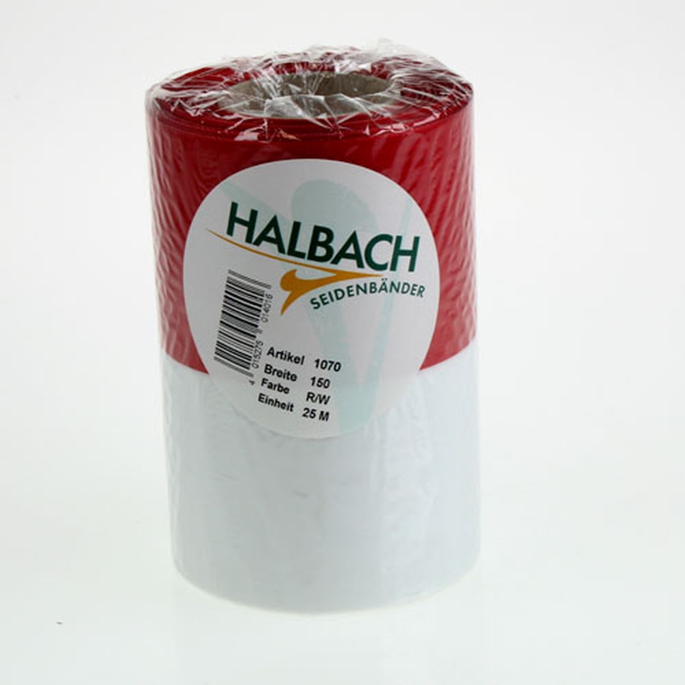 Moiré wreath ribbon, mourning ribbon white-red, decorative ribbon 150mm, memorial ribbon mourning fleur, acetate taffeta 25m