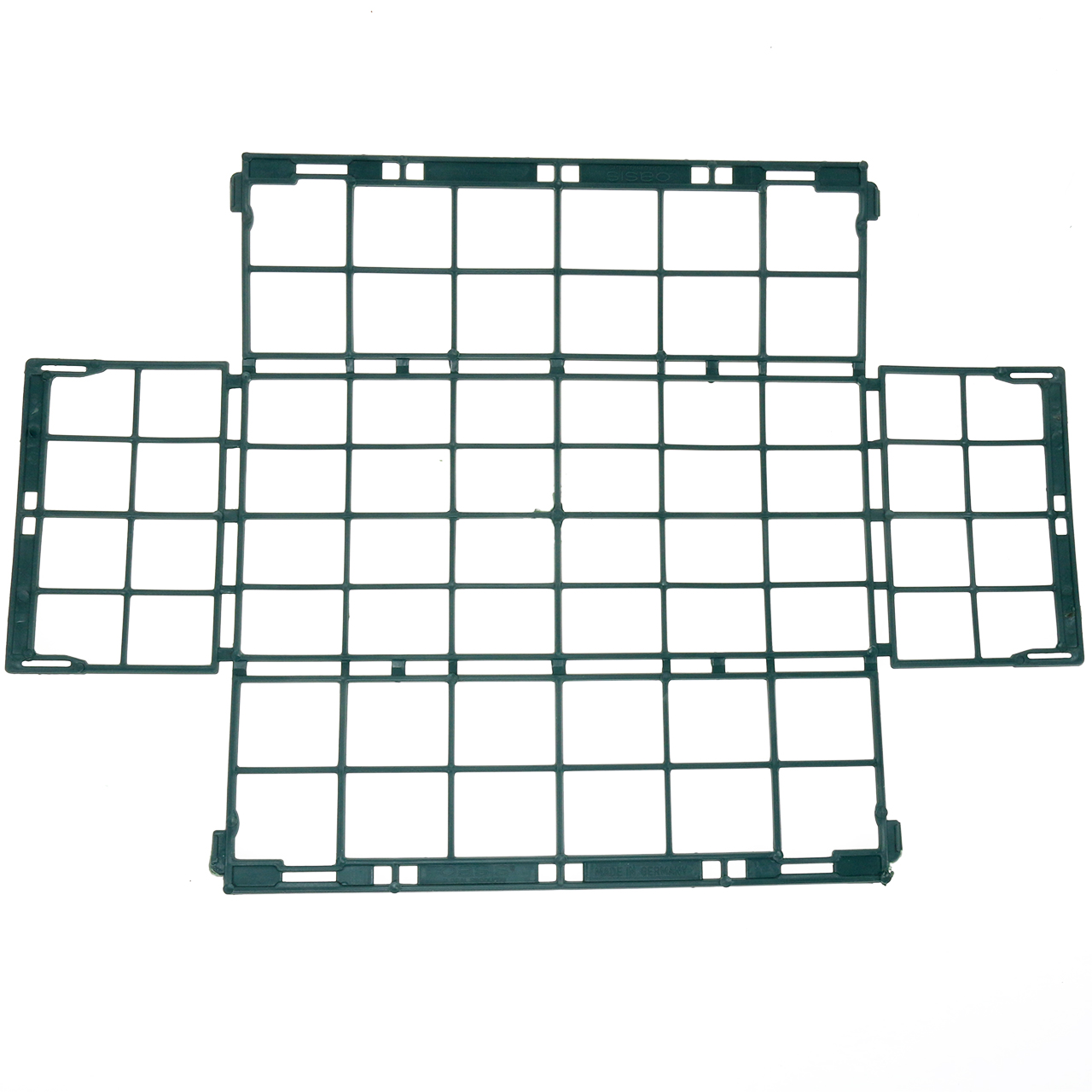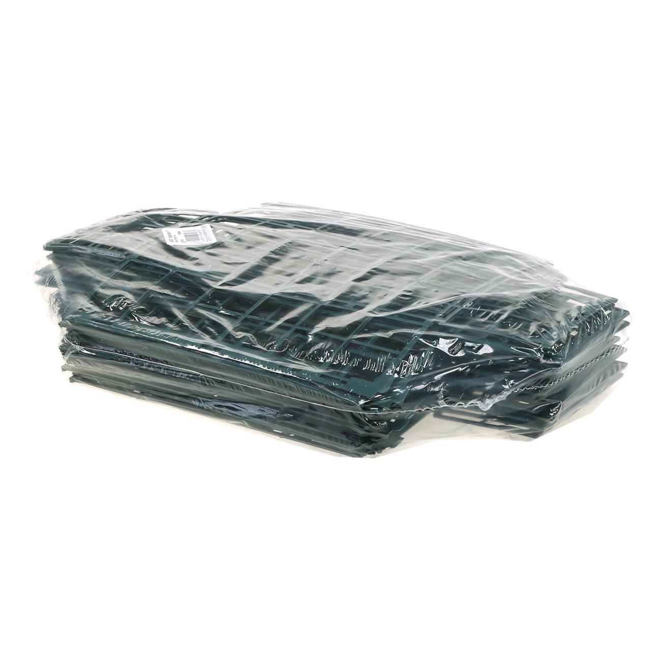 The arrangement underlay, also known as the inverted grid, is made of flexible and at the same time robust plastic. Thanks to the green color, the lattice structure is almost invisible in your finished arrangements. Practical eyelets are attached to one side of the plug-in net, to which you can easily attach your finished plant arrangement as a wall decoration with nails.