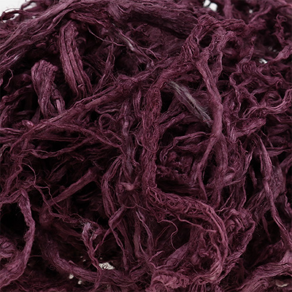 The aubergine-colored mulberry cotton will be delivered to you in plastic packaging, with about 150 grams of the material.