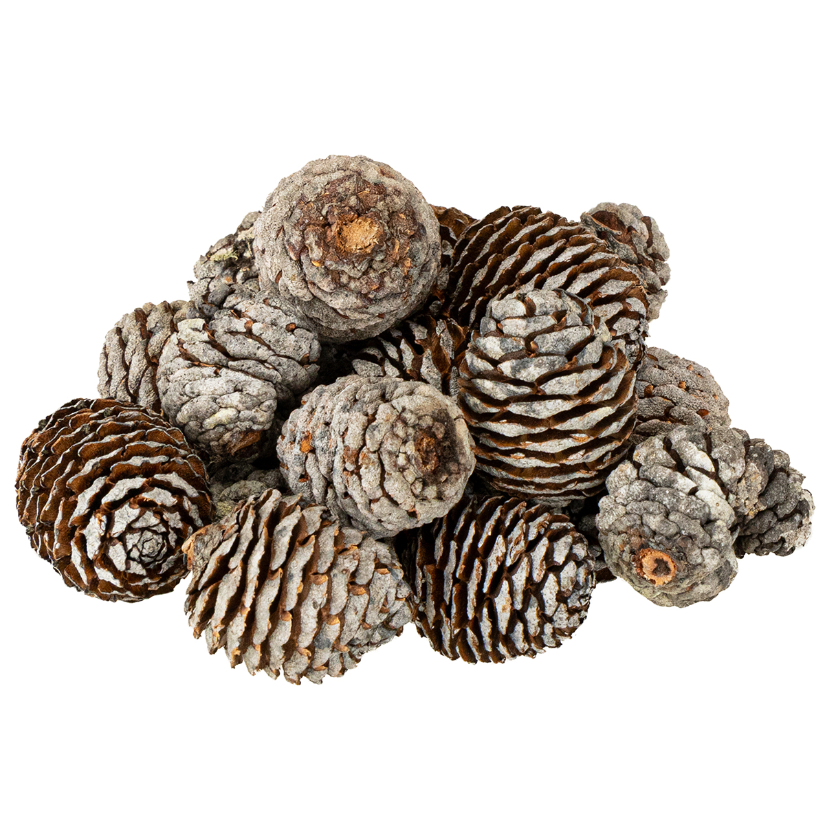 The Murii cones come in a 500 gram bag and vary in size from about three to about six centimetres. They have also been left in their natural color so that the white outer skin of the scales can be seen, appearing as if the tree cones had a light layer of frost on them. Accordingly, the pine cones fit perfectly into a winter decoration and can be added to almost any decor!