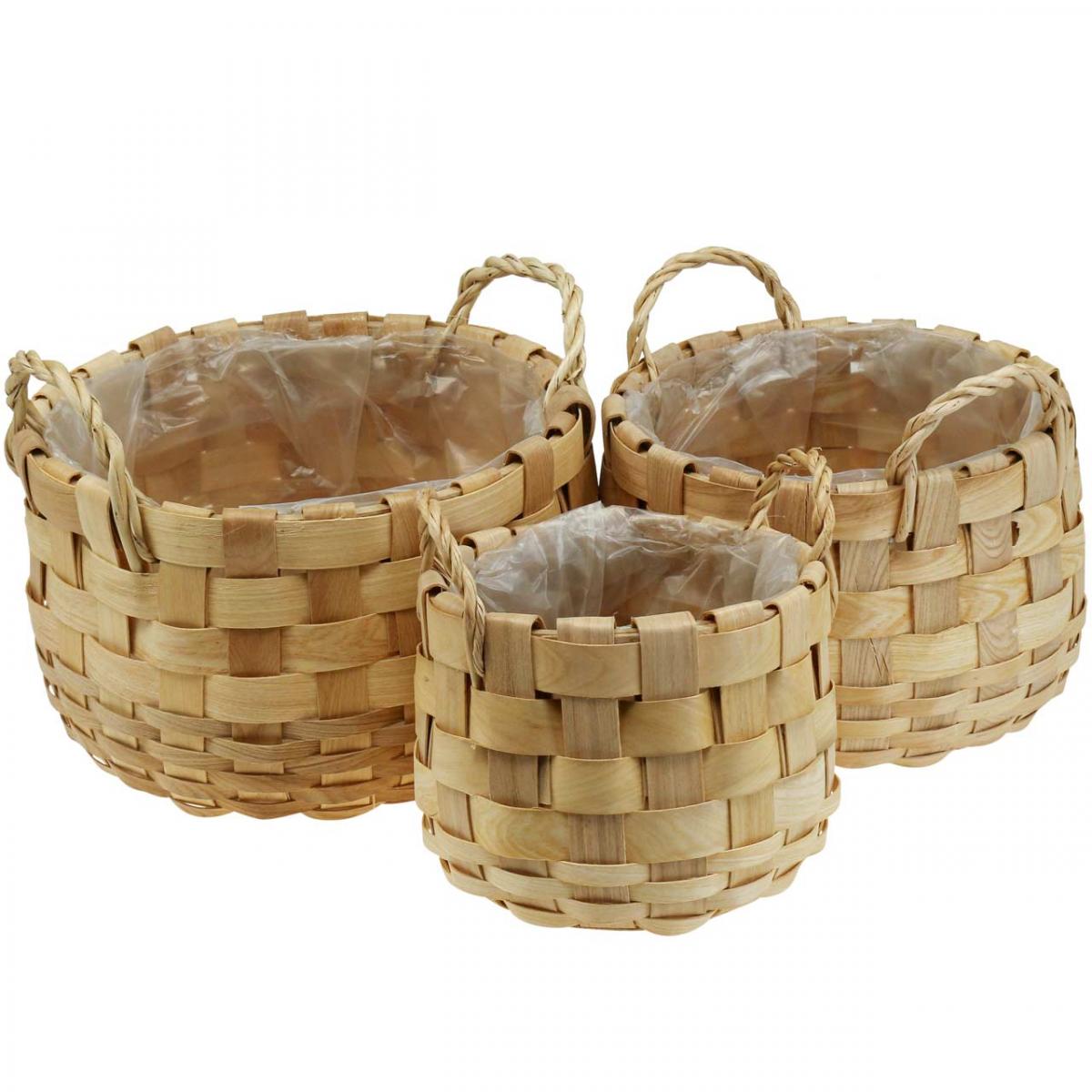 Natural plant basket set of 3, flower basket, planter, boho decorative basket, woven, Ø18/23/29cm
