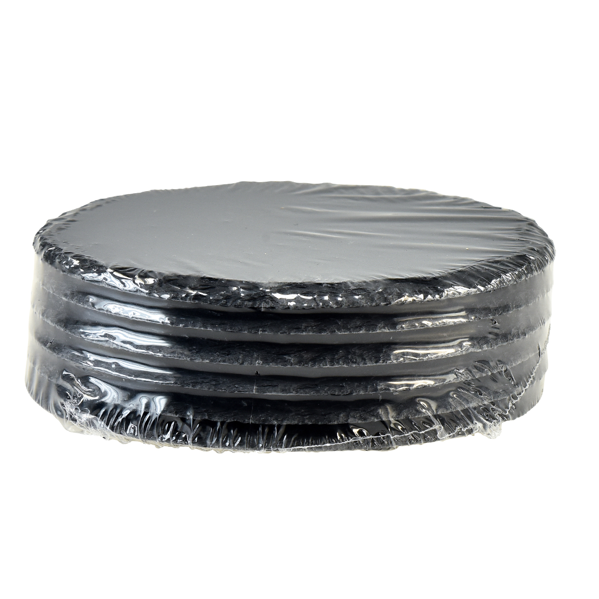 The black slate slices are slightly bevelled from above and roughly chipped off at the edges. The underside of the stone coasters is provided with three foam protectors. – This means that the round stone slabs are non-slip and cannot cause scratches.