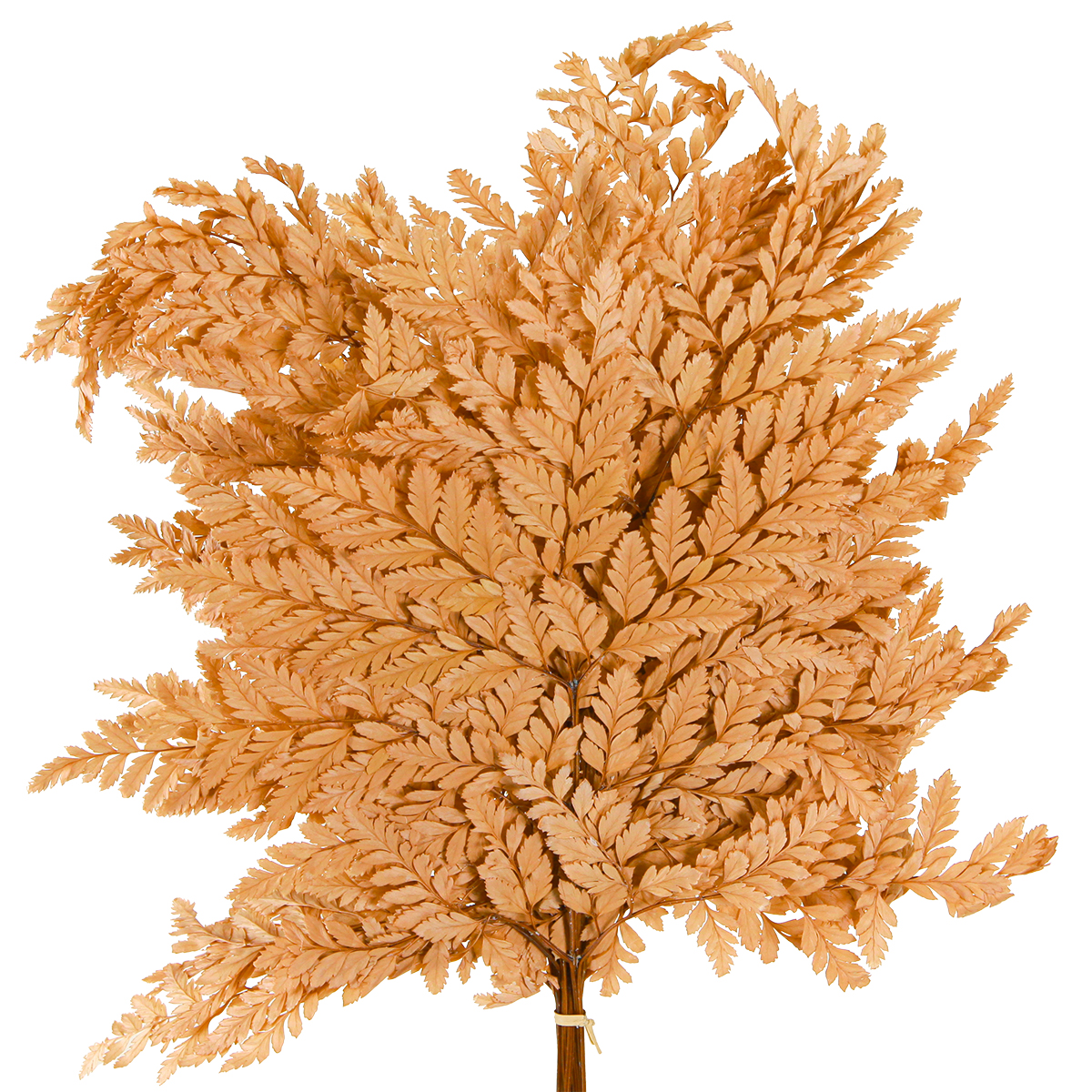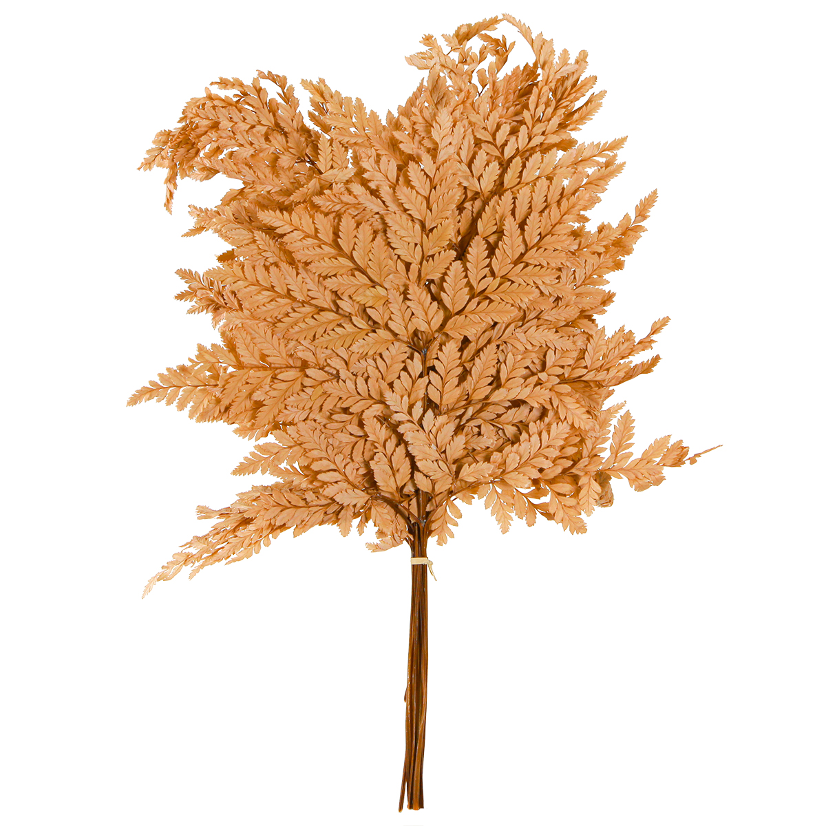 - Real fern fronds, colored orange and preserved