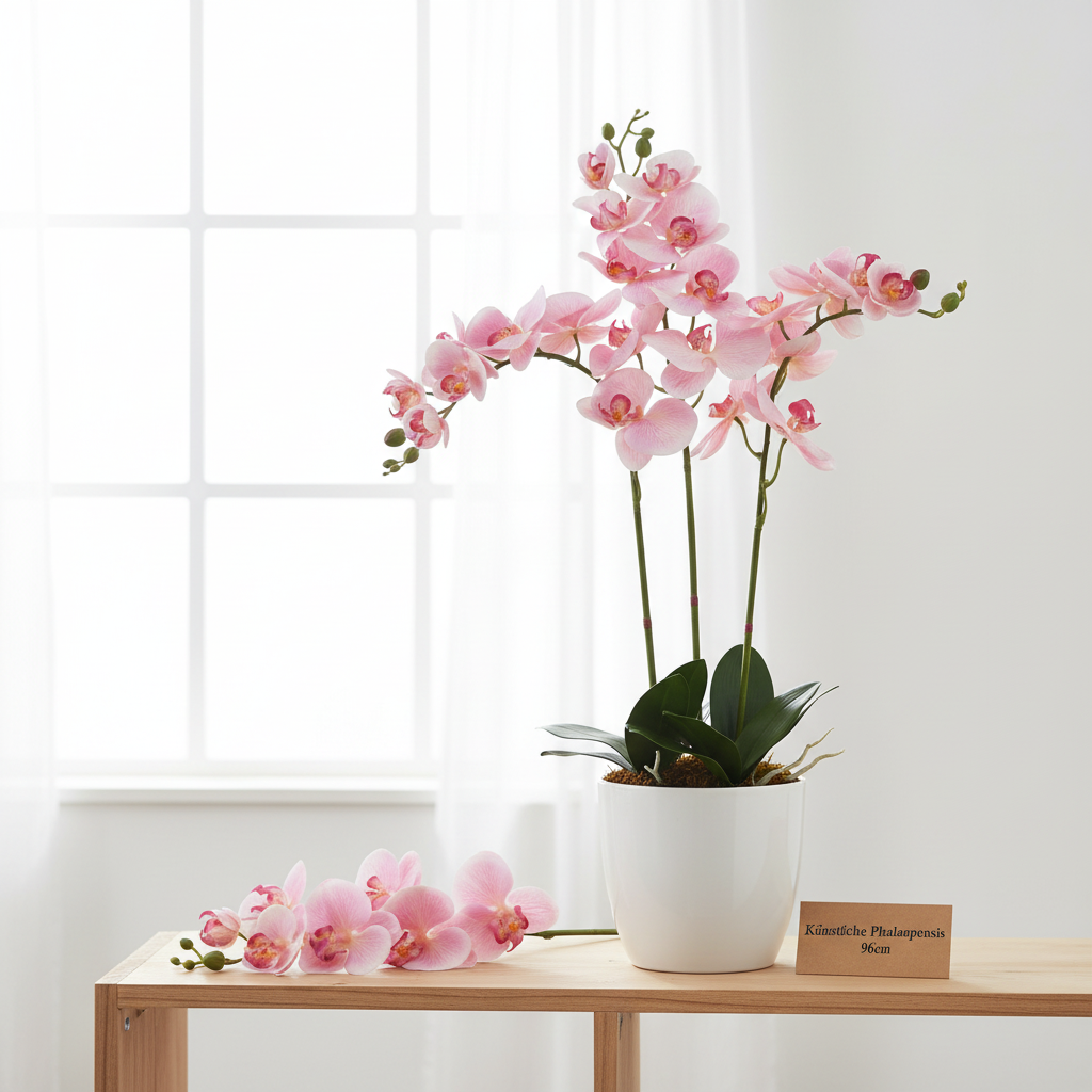 The splendor of its flowers makes this orchid of the Phalaenopsis genus a first-class artificial flower. Use the large artificial flower to create a permanent decoration, even in dark rooms!
