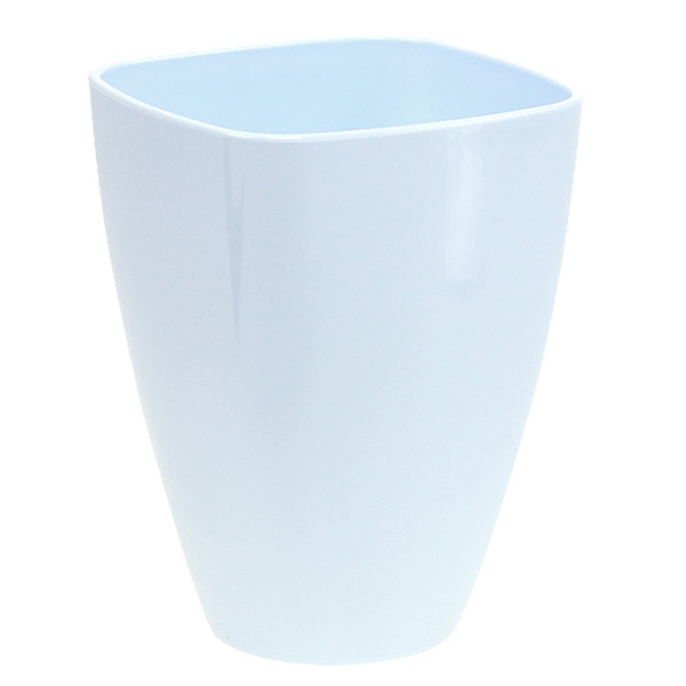 The glossy white orchid pot is made of lightweight plastic and is approximately 17 centimeters high. At the top it has a diameter of about 12.5 centimeters, the footprint measures about 7.5 centimeters. Inside there is an approximately 4.5 centimeter high indentation on which the plant pot is placed.