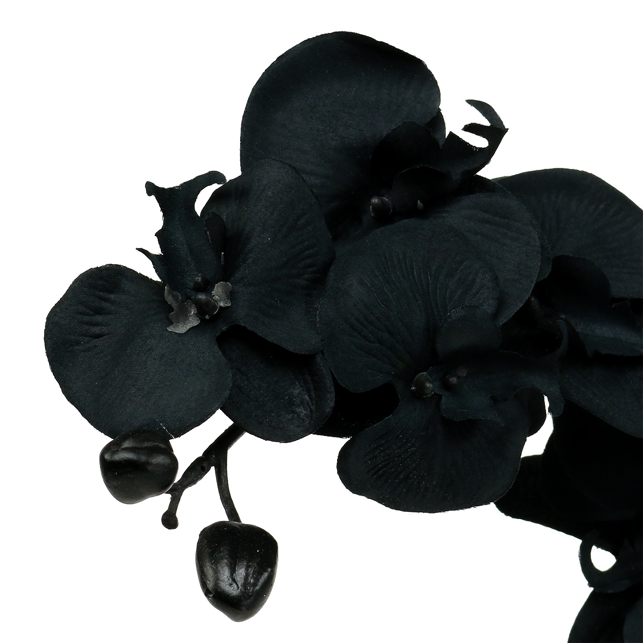 You get the orchid in black to decorate with a length of about 54 centimeters. The individual flowers are between 8 and 10.5 centimeters in size.