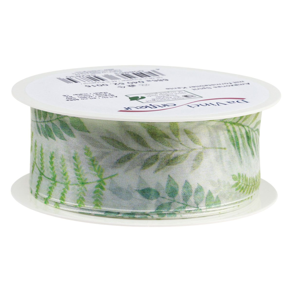 Organza ribbon chiffon ribbon green leaf tendrils 40mm 15m