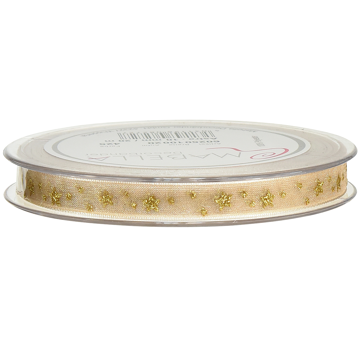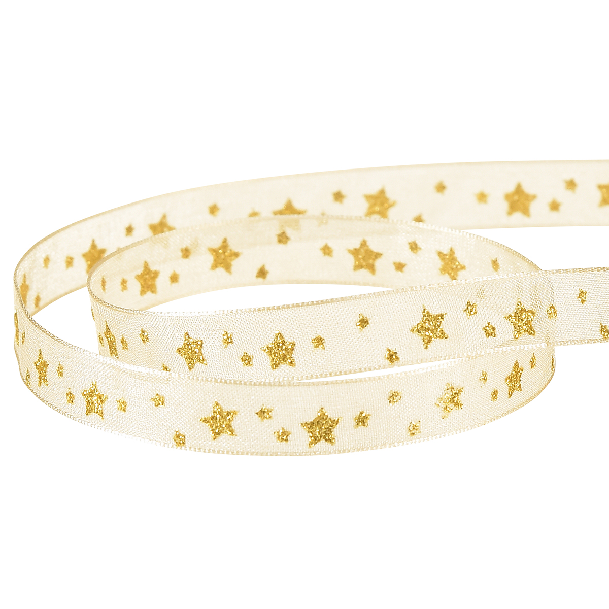 - High-quality organza ribbon with star pattern in gold