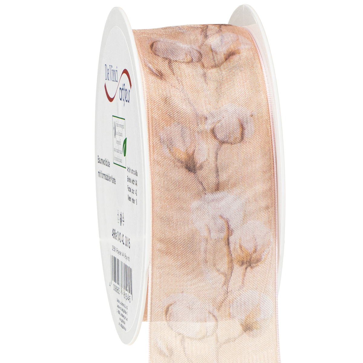 Organza ribbon cotton flowers decorative ribbon pink 40mm 15m