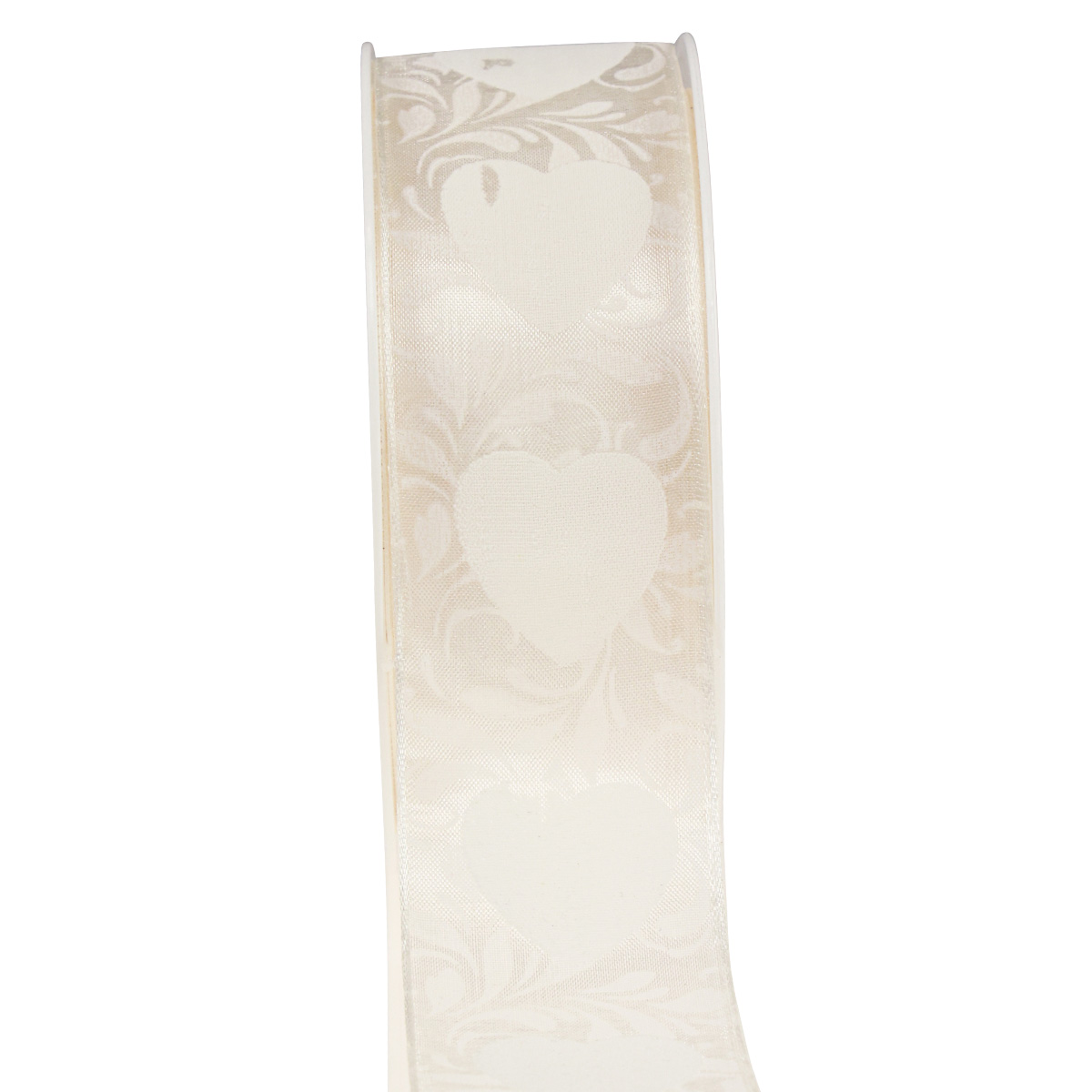 Organza ribbon cream decorative ribbon hearts 40mm 15m