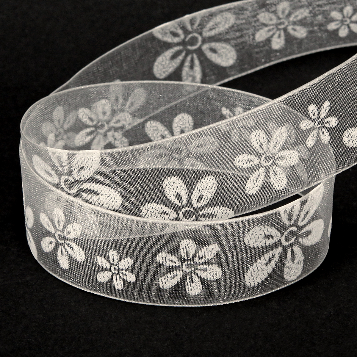 The fabric band is translucent and shines beautifully. The varied white flower pattern, however, is not transparent. This makes the flowers look even more beautiful on wrapping paper.