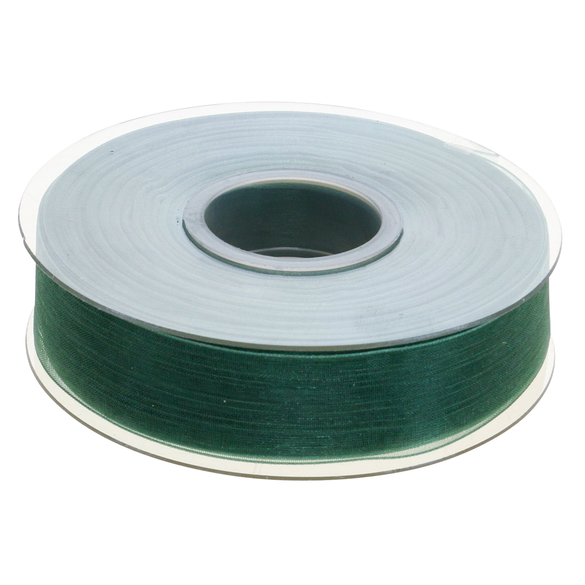 If you buy the fir green organza ribbon, you will receive it here, practically wound up on a sturdy plastic spool with a width of around 25 millimeters and a total length of around 50 metres.