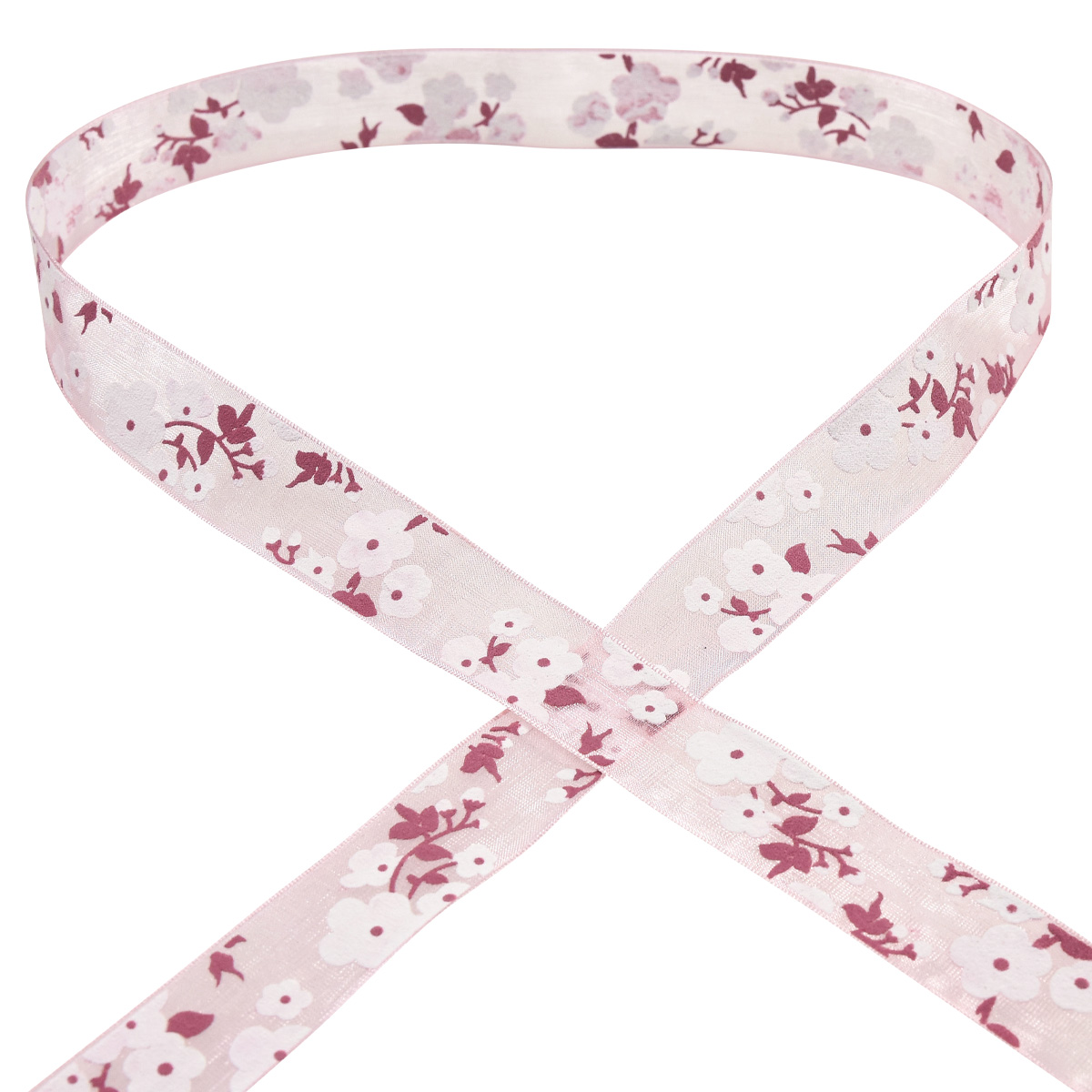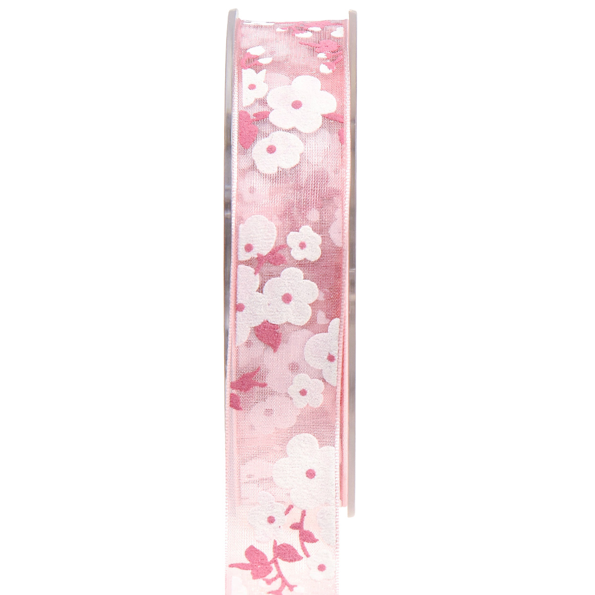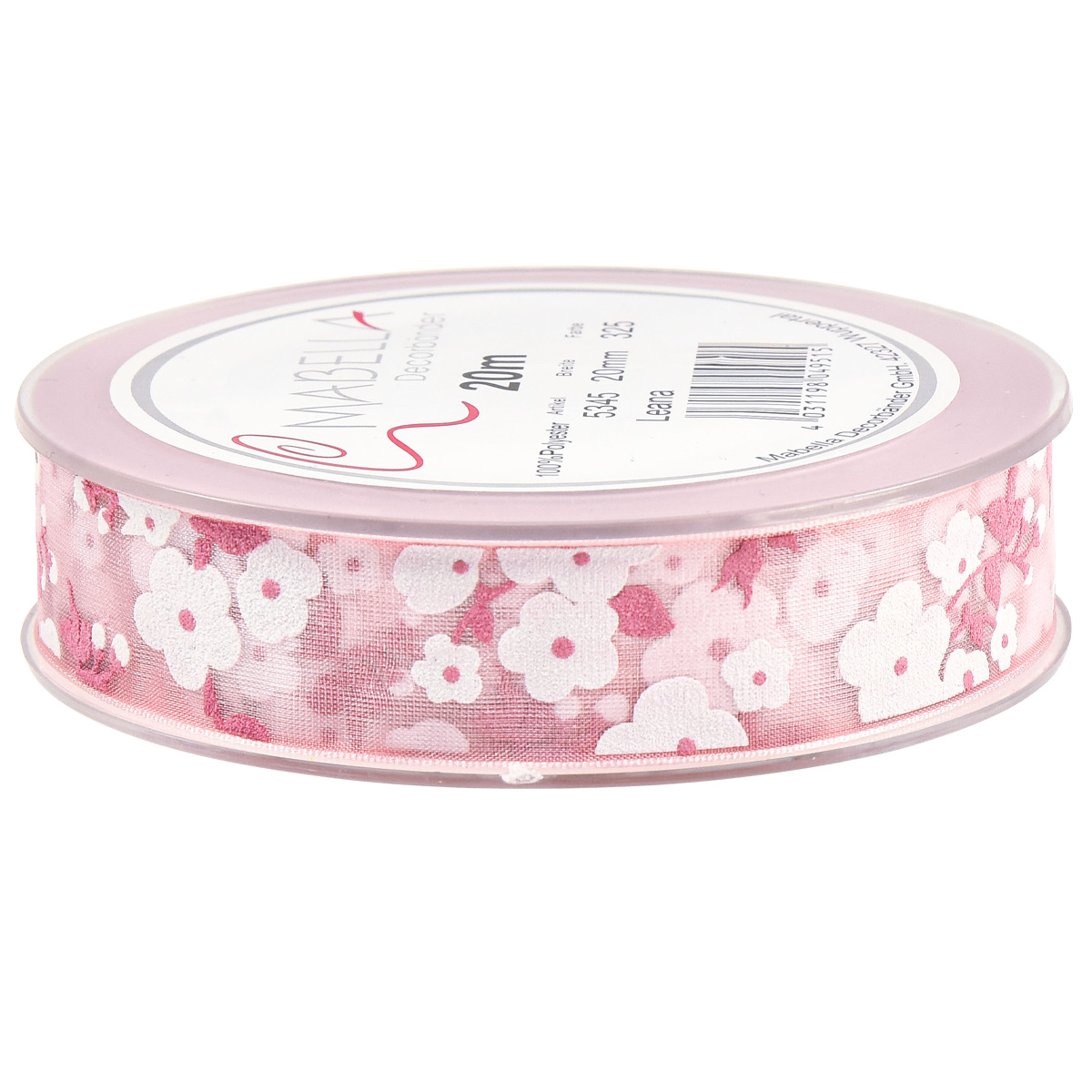 Organza ribbon pink with flowers gift ribbon 20mm 20m