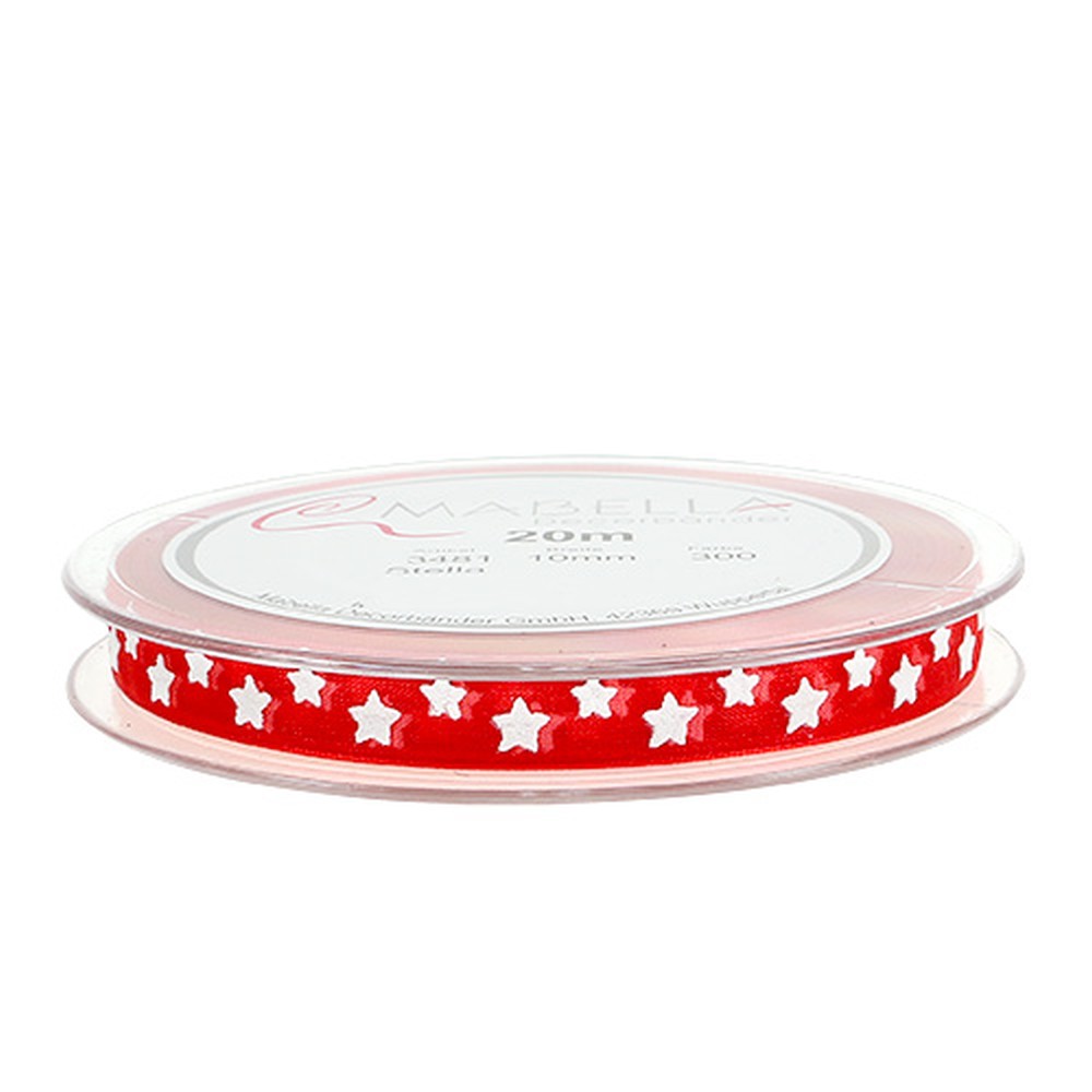 Product name: Organza ribbon with star pattern red 10mm 20m