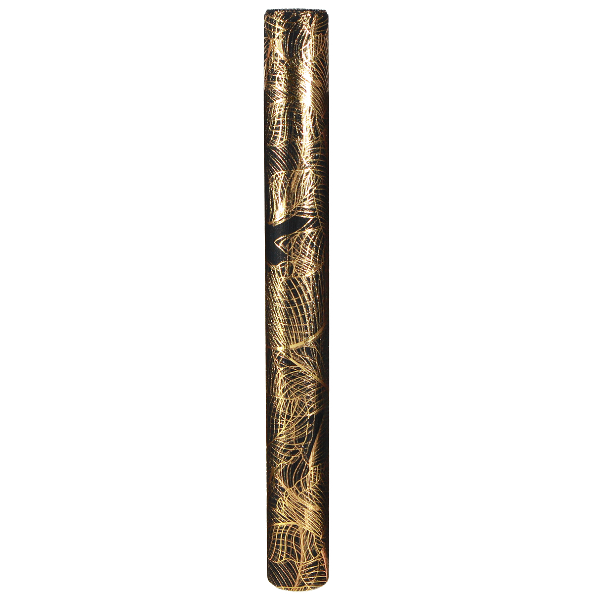 Organza table runner black-gold – elegant decorative fabric roll with leaf pattern 48 x 450cm
