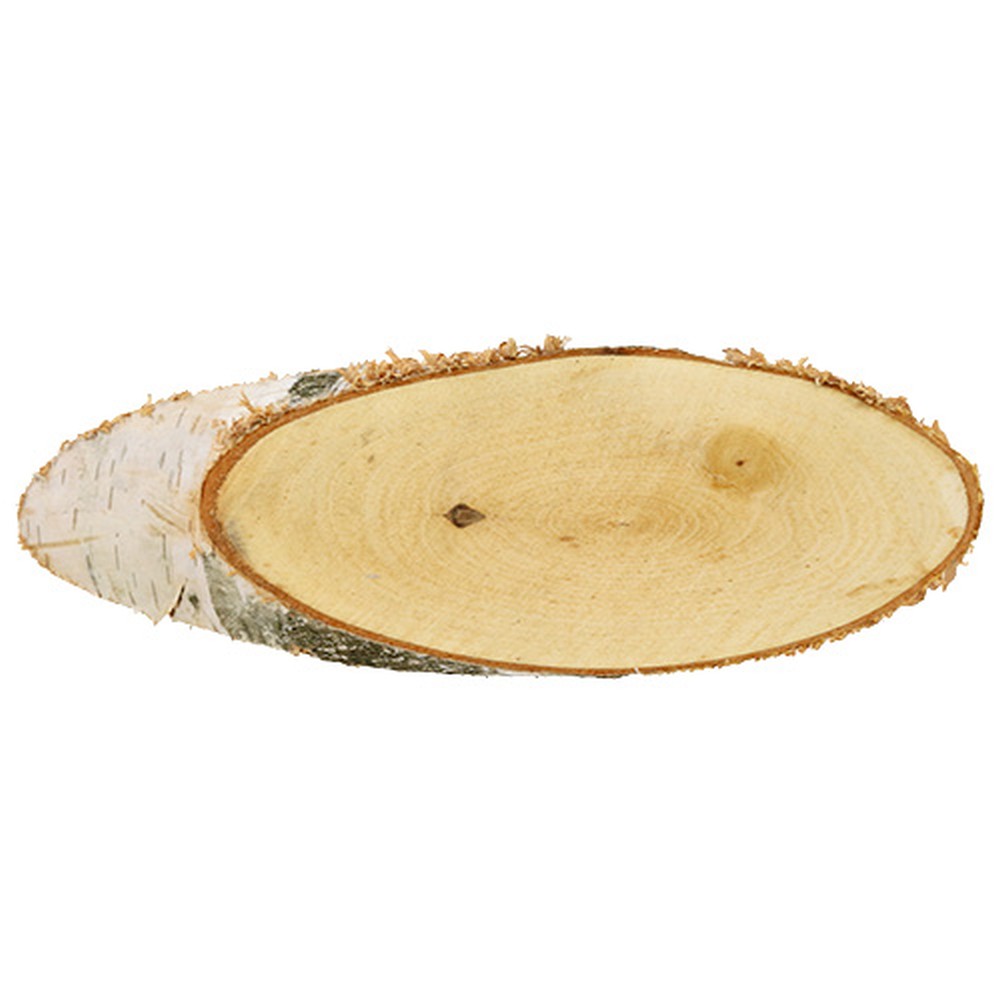 The oval birch discs in nature are delivered in a net for a total of 10 pieces. As a natural product, each slice has a slightly different size. The discs can have a total length of about 18 to 22 centimeters. This refers to the entire disc of wood with bark, so that the cut surface available for engraving or decoration with the annual rings is correspondingly 4 to 5 centimeters smaller.