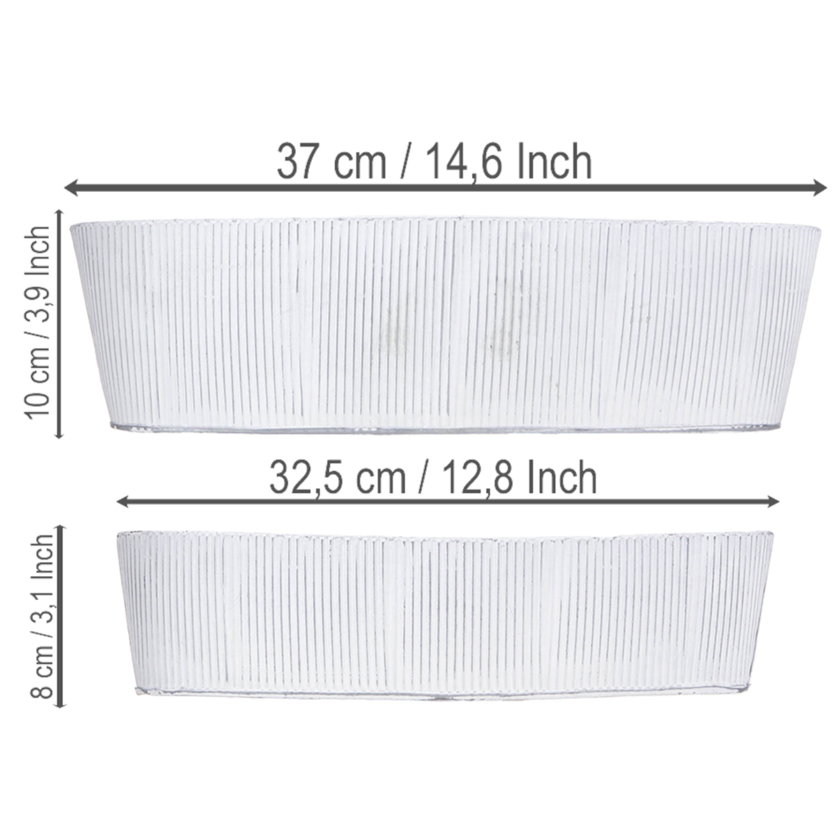 This oval metal bowl in white and silver brings a touch of retro and vintage to your home. With its whitewashed exterior and silver-plated interior, these metal bowls add a touch of style to your room. The simple, oval shape speaks to the contemporary design, blending seamlessly into a modern or Scandinavian interior—ideal as a stylish, elegant table centerpiece. Combined with accessories from the Floristik24 metal decor category, they create a harmonious overall look. The grooved decor and the combination of white and silver underscore the attractive shine and make these bowls an unmistakable highlight on any sideboard or dining table.