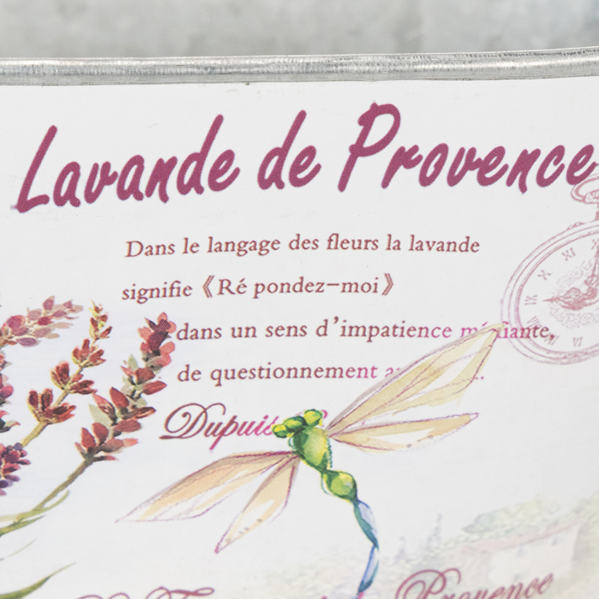 Discover this oval flower bowl with handles and its subtle lavender and dragonfly print that will bring calm and serenity to your rooms. The metal bowl has a rustic and nostalgic look at the same time.