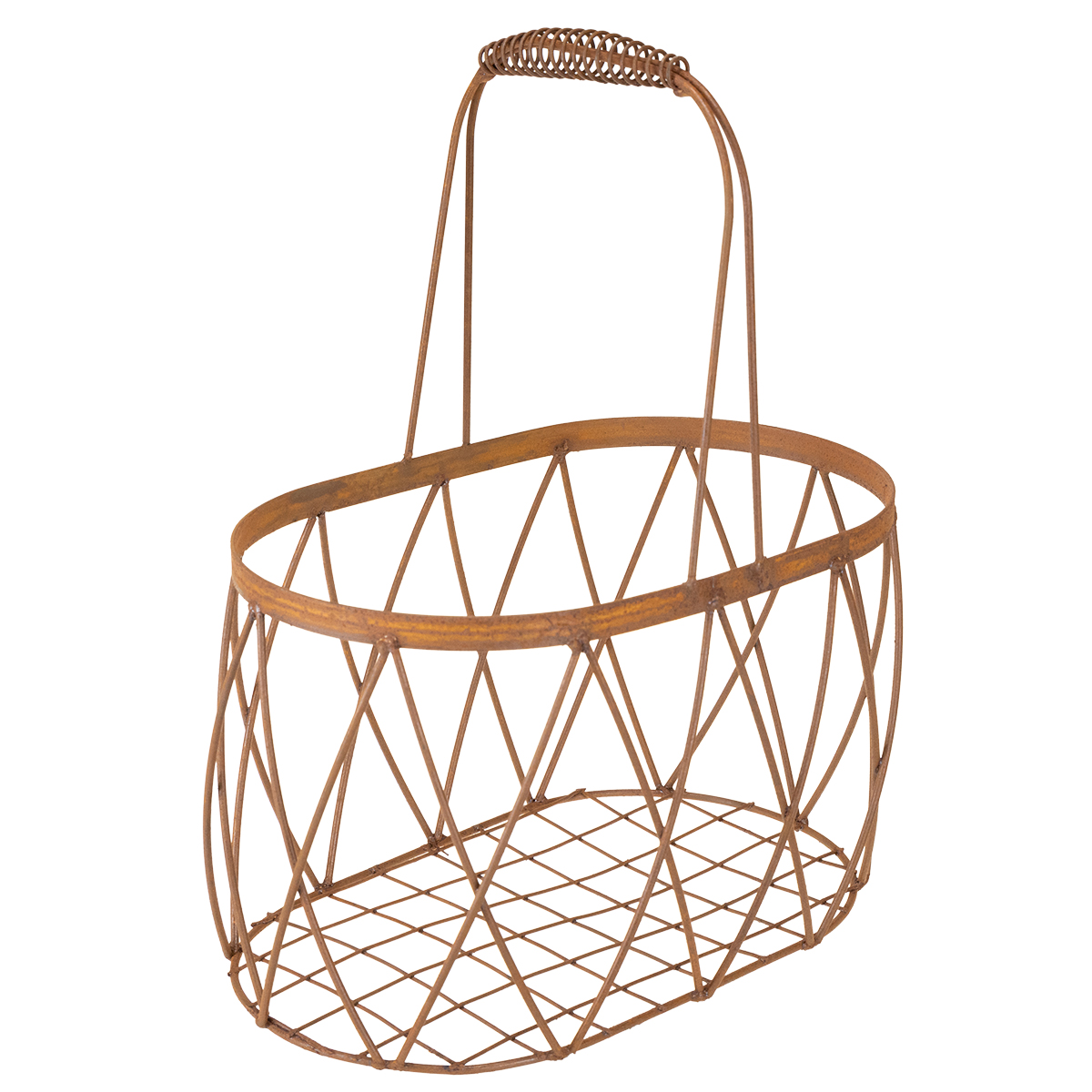 Product name: Oval wire basket with handle, garden decoration, rust finish, 30/25cm, set of 2