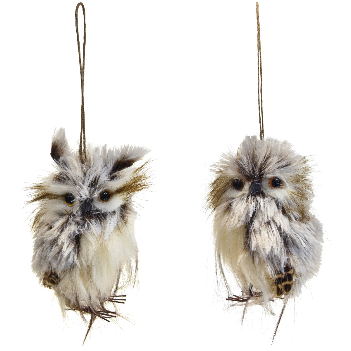 Owl decoration owl figures small, forest animals decoration 11cm white-brown 2pcs