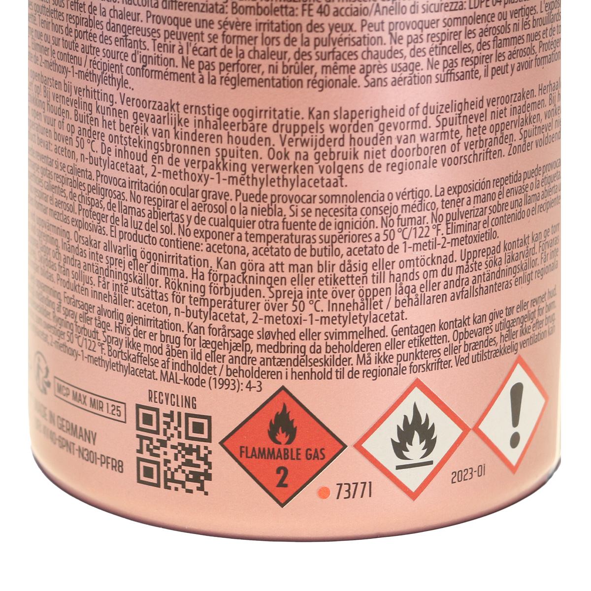 Instructions for use: Before each use, the can must be shaken vigorously so that the components can mix properly.