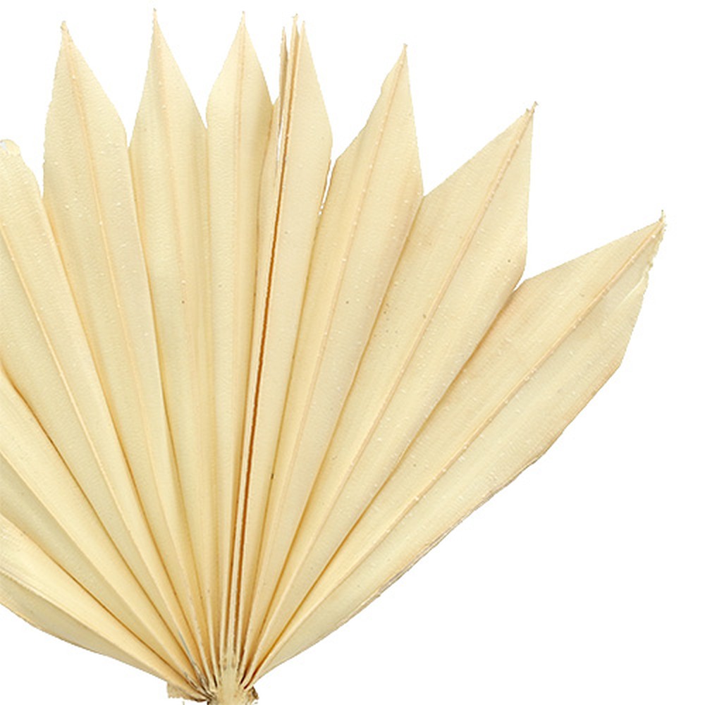 Alternatively, you can shorten the stem or remove it entirely and use the palmspear as a frame for an elegant flower arrangement, for example. Of course, the pointed leaves can also be integrated into an ensemble as individual eye-catchers and combined very nicely with other exotic products such as bell cups on a stick, Buddha nuts and cane coil. Proteins and local dried flowers in light cream and natural earth tones complement a funeral arrangement with palmspear impressively.