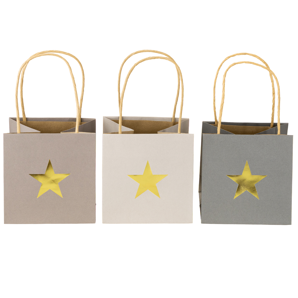 Paper bags with star and handle gray assorted 12×12×12cm 9pcs