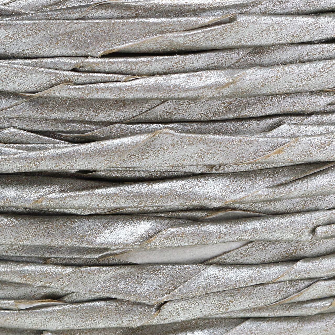 The silver-colored paper cord is delivered to you, without wire, rolled up on a handy plastic spool. The craft tape, which consists of 52% cellulose and 48% polypropylene, measures around 40 meters in length and around 3 millimeters in diameter.