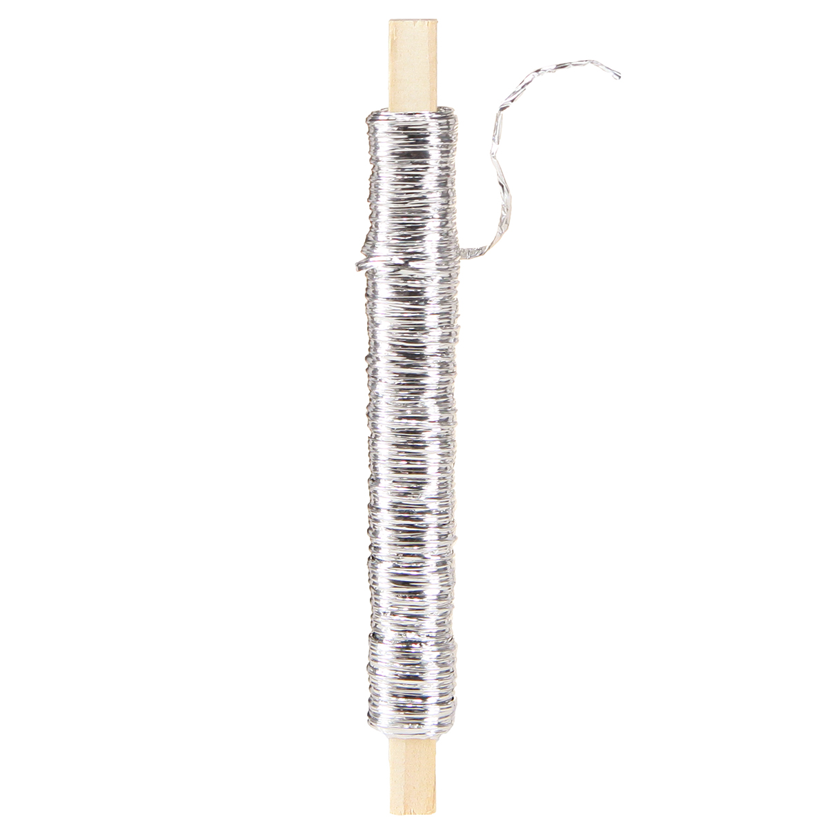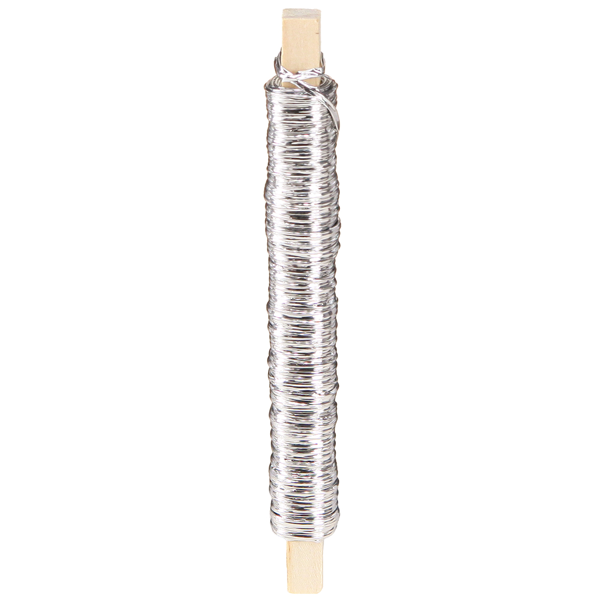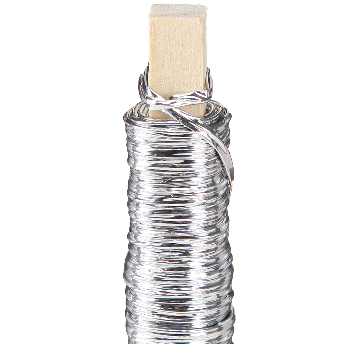 The wrapped wire, which is offered as a paper cord in silver, is around 22 meters long and attached to a wooden stick. The diameter of the cord is approximately 0.8 millimeters.