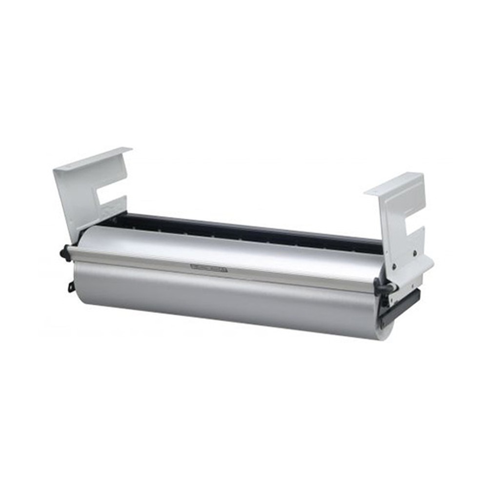 The ZAC film dispenser for mounting under the table is approximately 57 centimeters wide, 30 centimeters high and approximately 27.5 centimeters deep. Rolls with a maximum width of 50 centimeters, a maximum diameter of 24 centimeters and a maximum weight of around 20 kilograms can be attached to it. The dispenser is not suitable for highly stretchable films such as stretch film.
