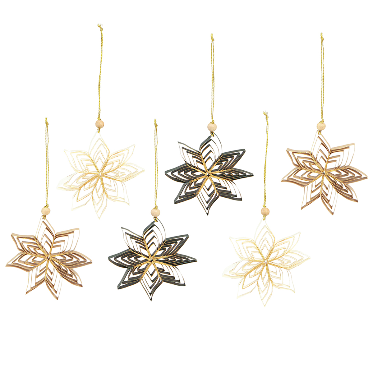 Product name: Paper star Christmas tree ornaments 10cm White Brown Green 6 pcs