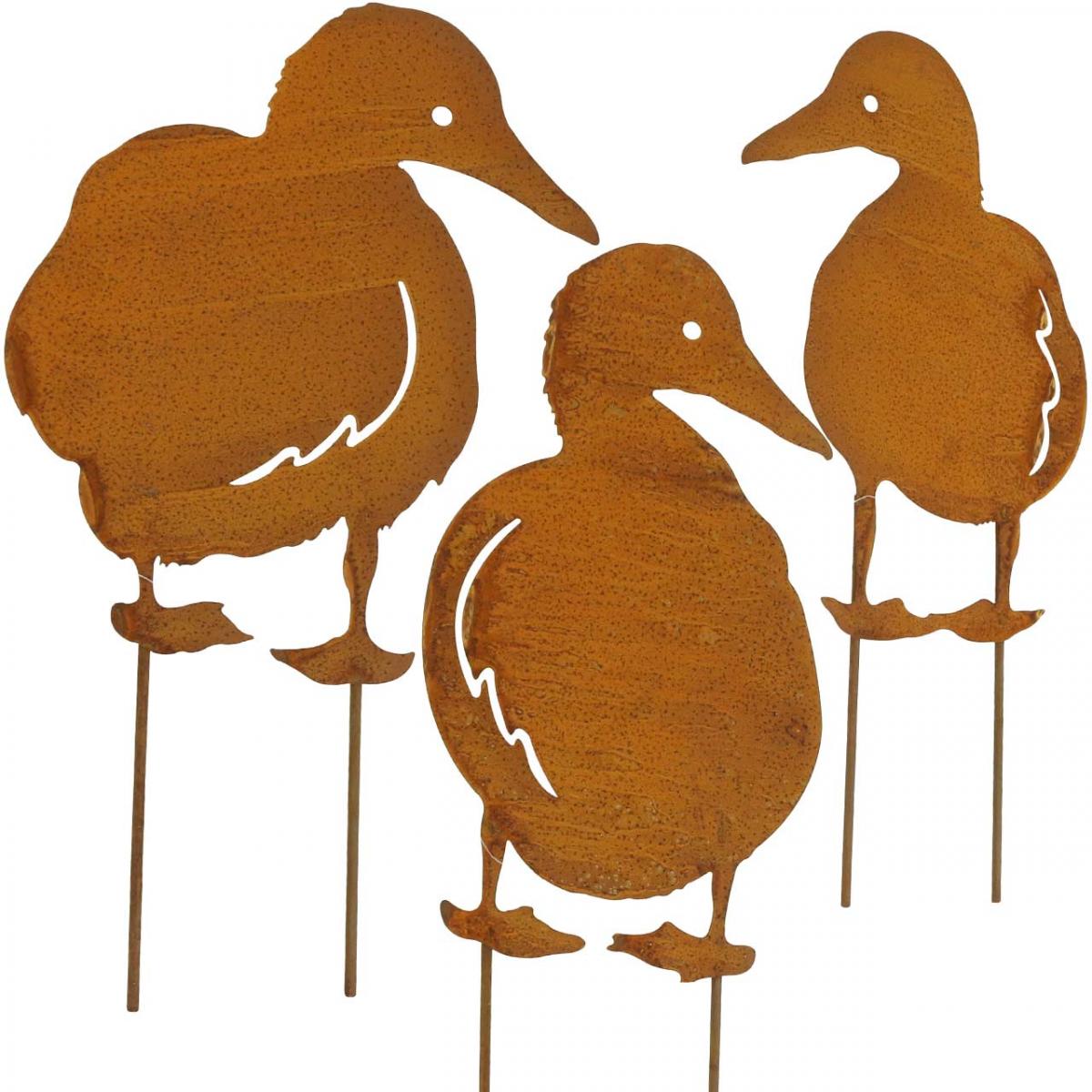 Patina garden stake ducks H33cm/35cm/37cm set of 3