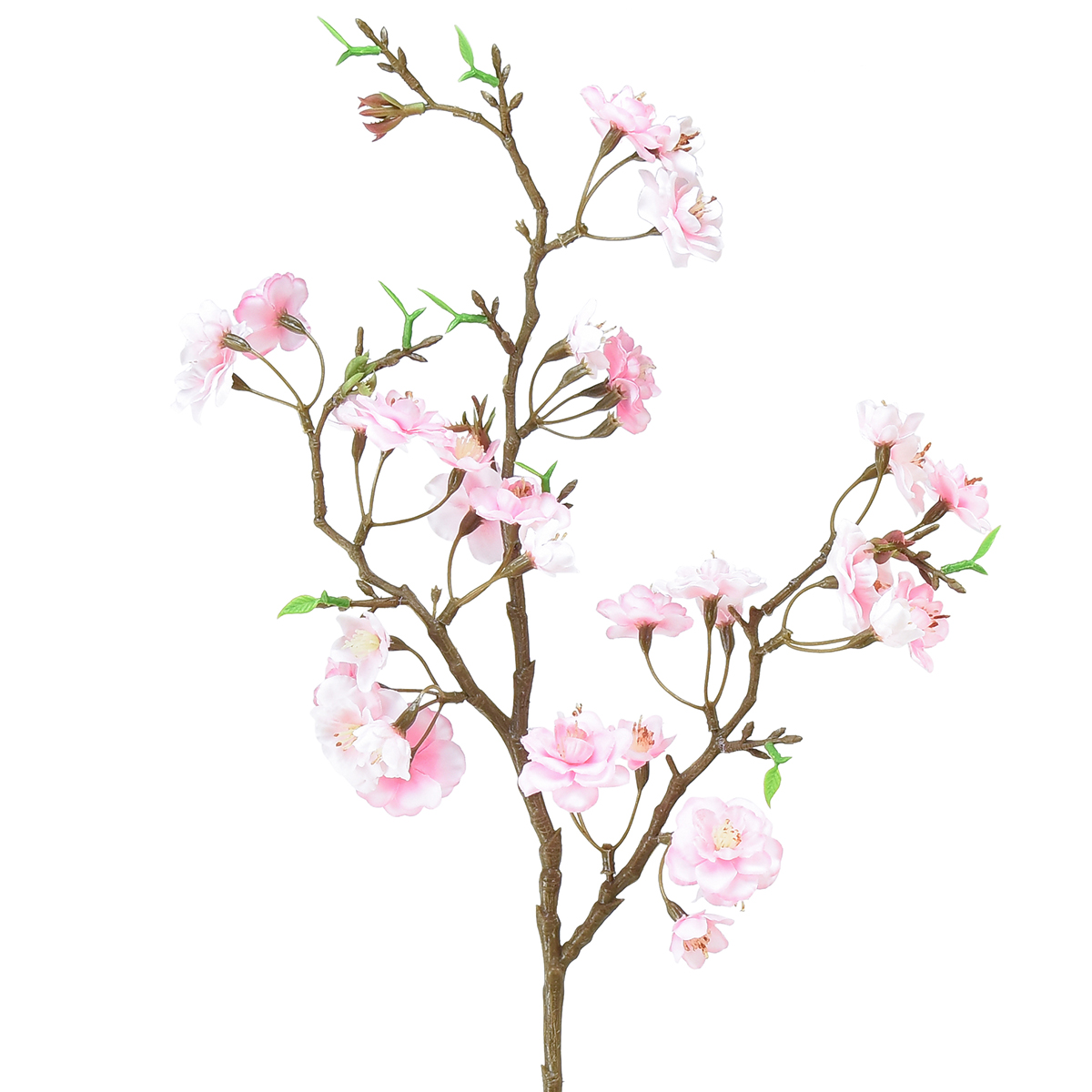 The pink peach blossom branch has a total length of about 69 centimeters. The individual fabric flowers have a diameter of approximately 2 and 4.5 centimeters