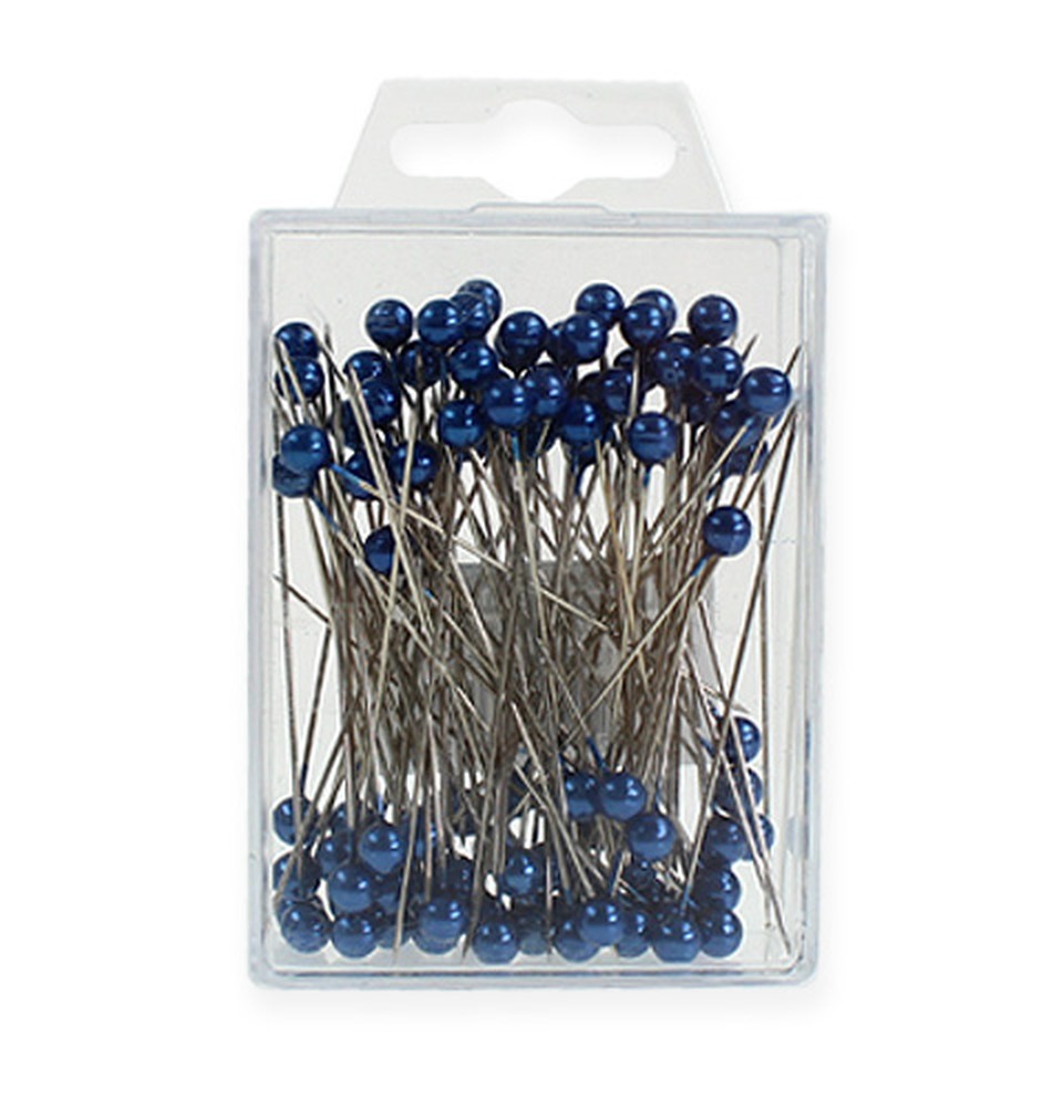 The 100 blue pearl head needles are delivered to you in a plastic box, each needle is about 65 millimeters long and each bead is about 6 millimeters in diameter.