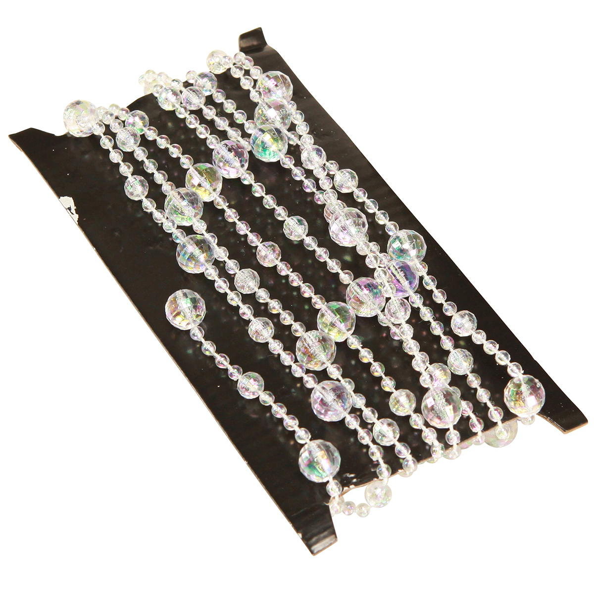 Each transparent pearl necklace with white cord is approximately 2.7 meters long. The diameter of the large pearls is approximately 1 centimeter.