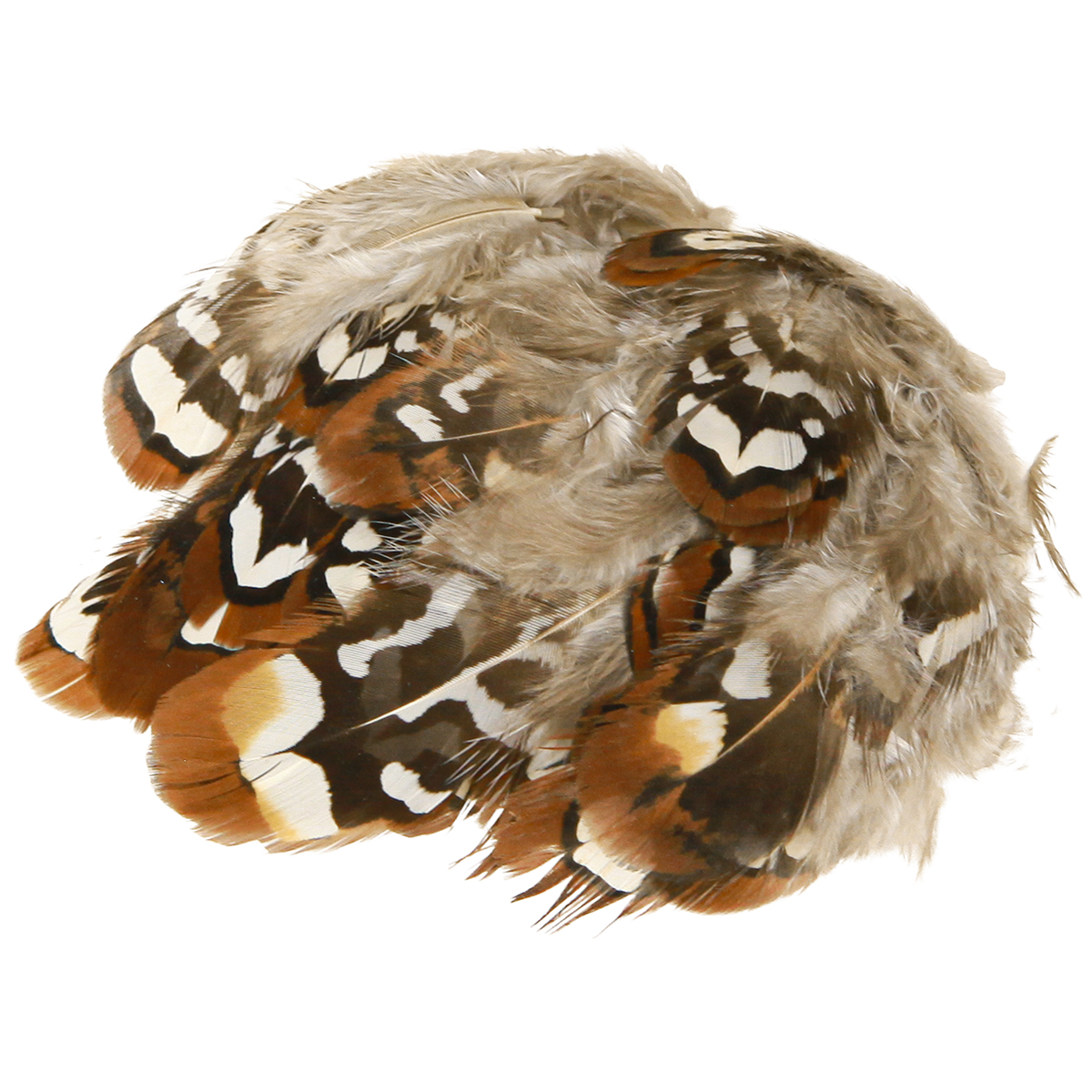 Pheasant feathers for crafts, brown spotted, 4-9 cm, 60 pieces