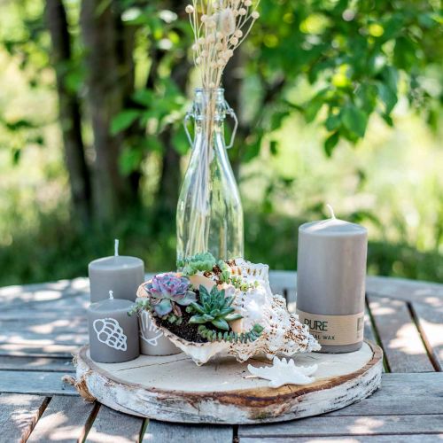 Brown is much more versatile than it might first appear! For example, you can create a table arrangement with candles in a wooden bowl. Floral foam, a golden vintage candle holder to stick and golden accessories as well as dried natural materials complement one or more cylindrical candles to a very noble composition. Or are you going with the taupe trend this spring? Then replace the gold tone with fresh light green. Early blooming, flocked Easter eggs and green sisal, in combination with the large wax candle, ensure that there are always new highlights from early spring to Easter decorations! For even more variety or different sized candle glasses, these decorative candles are not only available in other sizes, but also in other colors in our shop!
