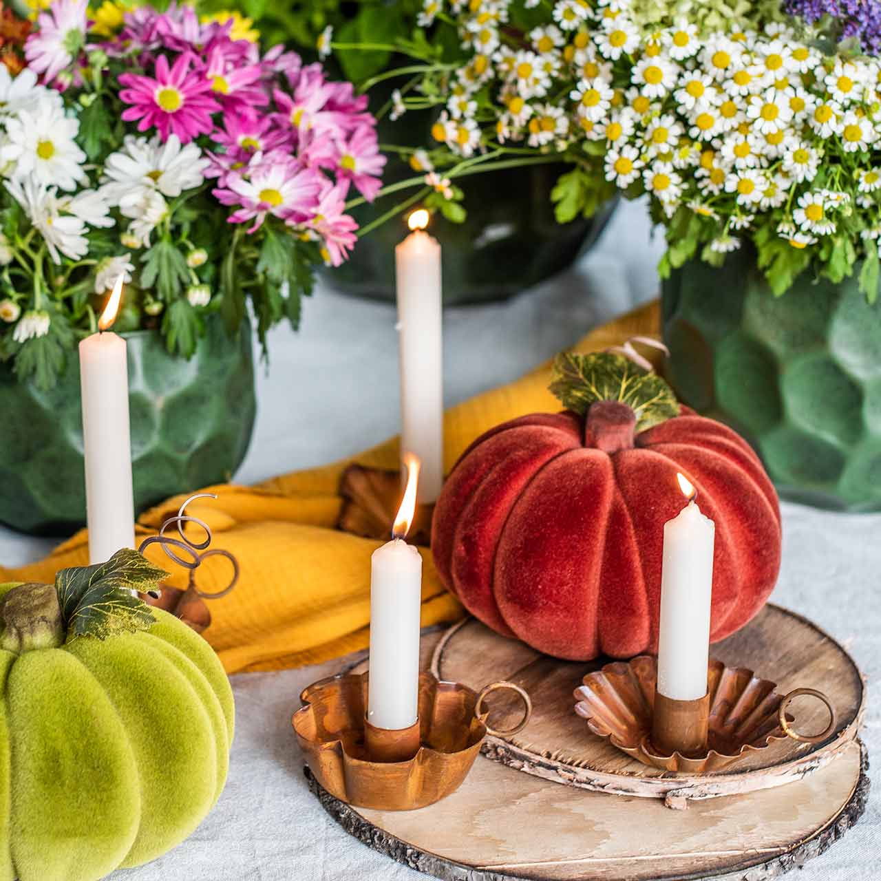 In this shorter version, the wax candle is particularly suitable for smaller arrangements, decorations on the windowsill or an opulent candle tray on which you want to arrange the tapered candles with the higher version from this product series in two rows or alternately. From maritime decorations to flower arrangements with natural materials, on a candle plate in light blue or for dry flowers in orange and red tones: White decorative candles make colors even stronger and spread a romantic light.