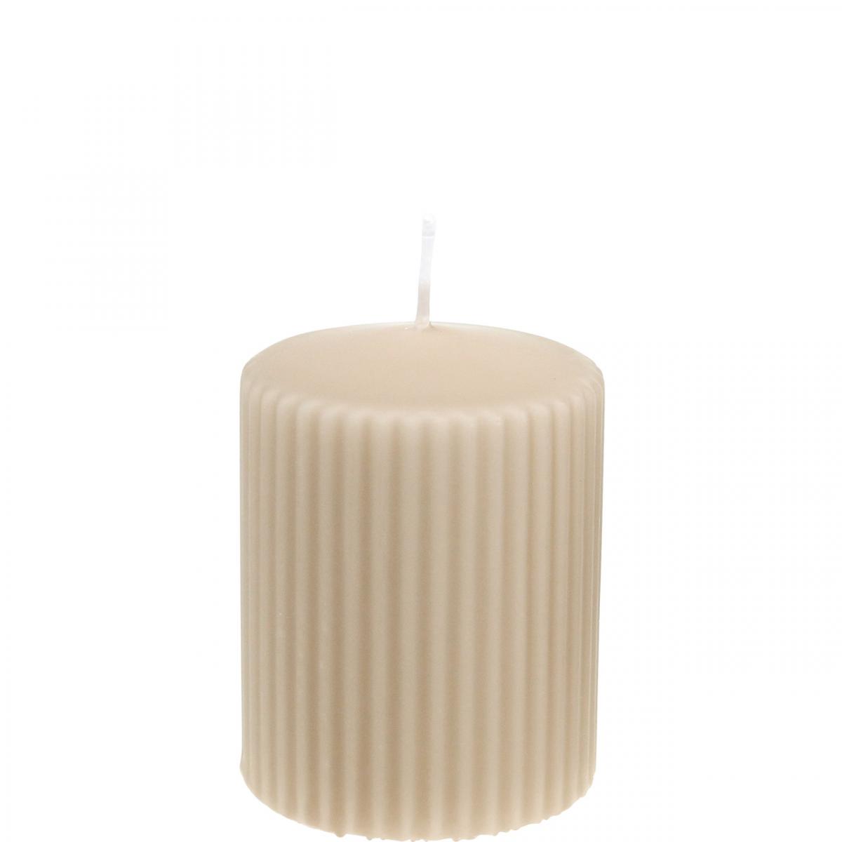 Product name: Pillar Candles Beige Grooved Candle 70/90mm 4 Pcs