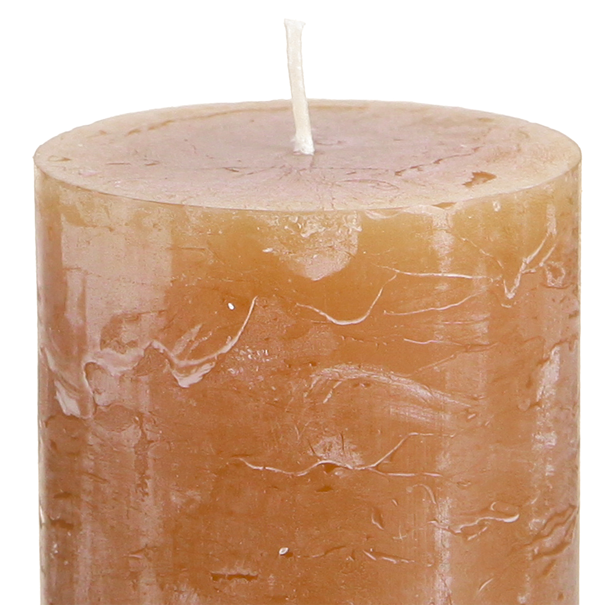 - Solid-coloured pillar candles in caramel for consistent colour intensity
