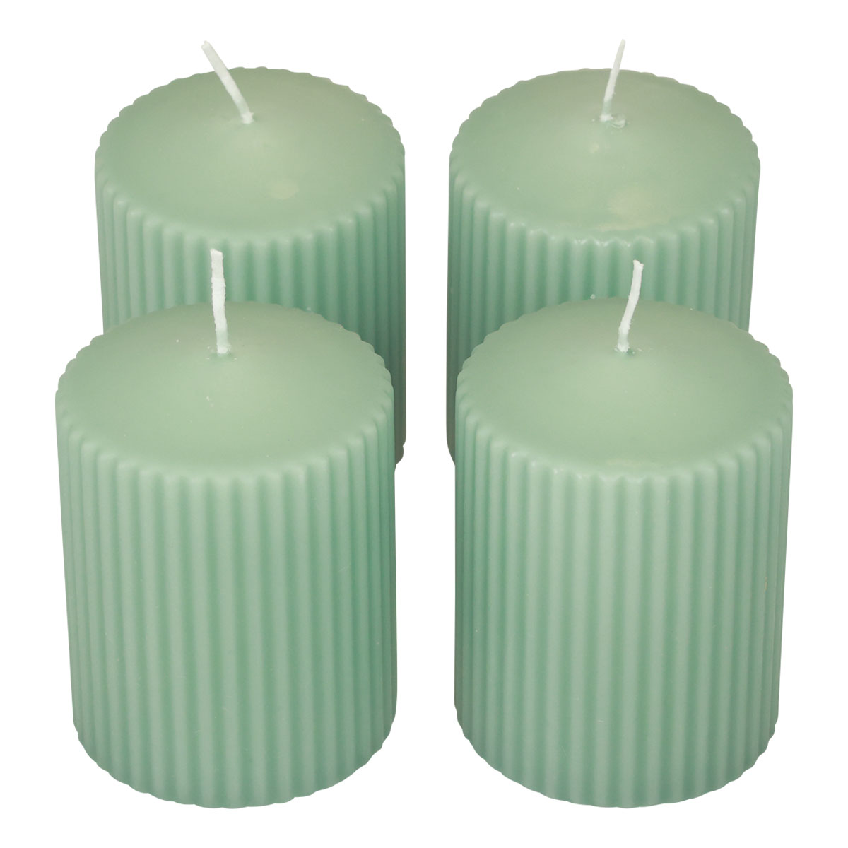 Pillar Candles Green Emerald Grooved Candles 70/90mm 4 Pcs