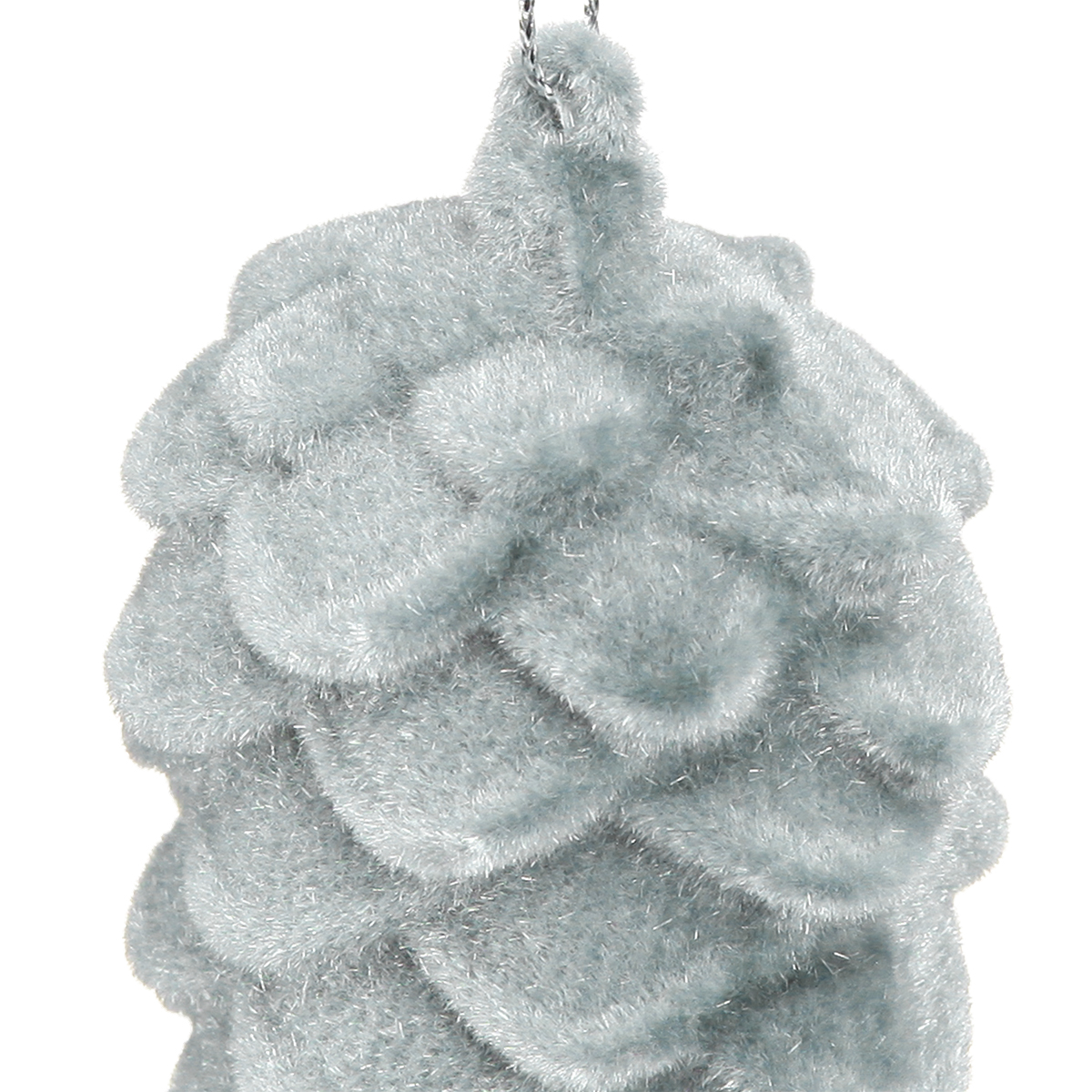 - 6 flocked grey pine cones, each approximately 11.5 cm long