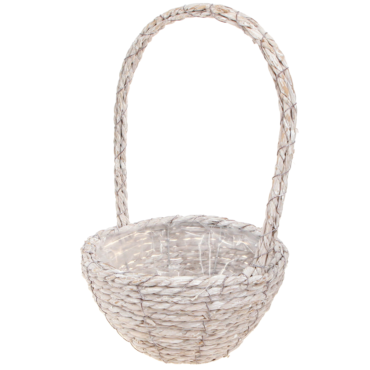 Metal plant basket covered with straw in natural and white: The stylish handle basket for your home