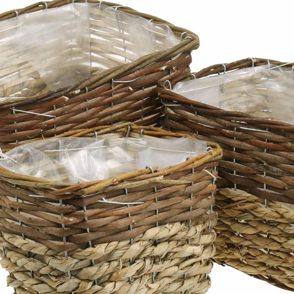 Already lined with foil, the natural baskets can be individually planted or used as a cachepot. The basket bowls are also ideal as a gift basket or for storing small items in the house and garden. Or you can use the plant baskets as a versatile arrangement underlay for table decorations.