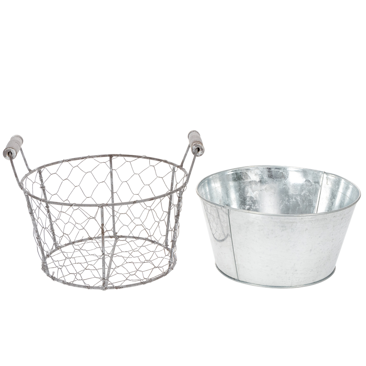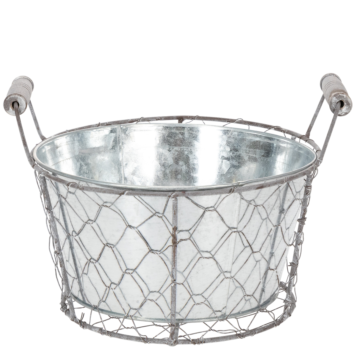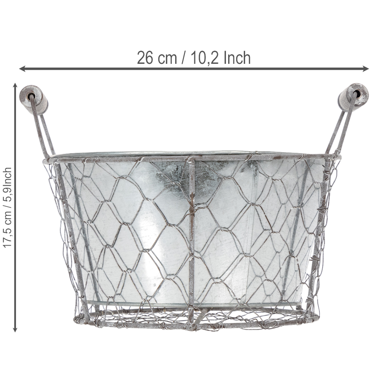 Plant basket with insert, wire basket, planter, spring silver, whitewashed, shabby chic, Ø22cm H17.5cm